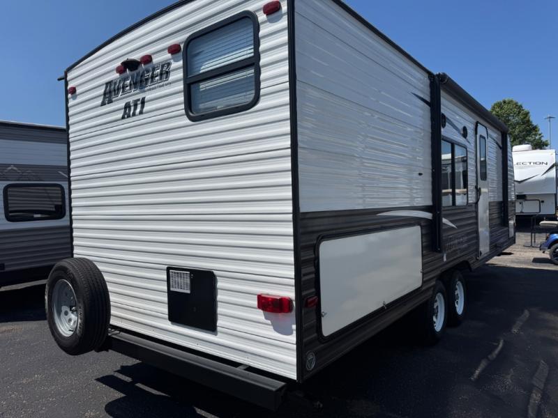 Don't waste any time getting out to your favorite getaway spot with an Avenger travel trailer from Prime Time RV! The Avenger will provide long-term quality and durability because of its exclusive EVERLAST construction, Dexter EZ-Lube axles, diamond-plate rock guard, and Solid Stance fold-down steps. Plus, the Avenger will also deliver industry-leading beauty on the interior with its designer window treatments, its seamless Carefree Congoleum flooring, its large fully vented windows throughout, and its premium fabrics. You will also be grateful to find a massive under-bed storage space so that you can keep extra luggage hidden away and out of sight.
