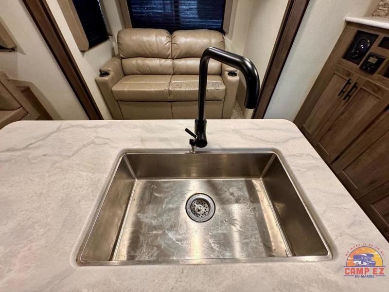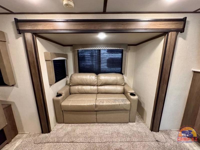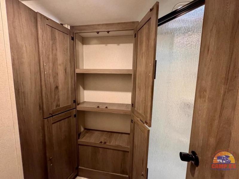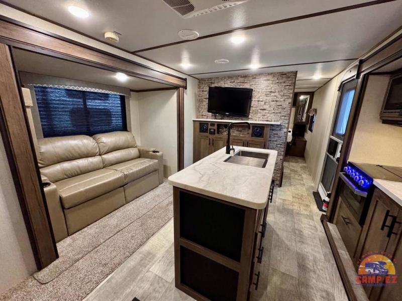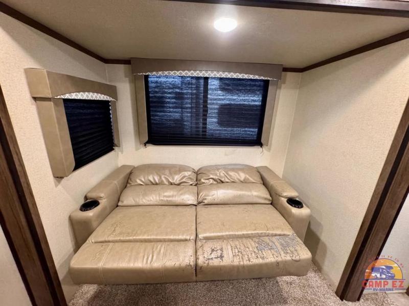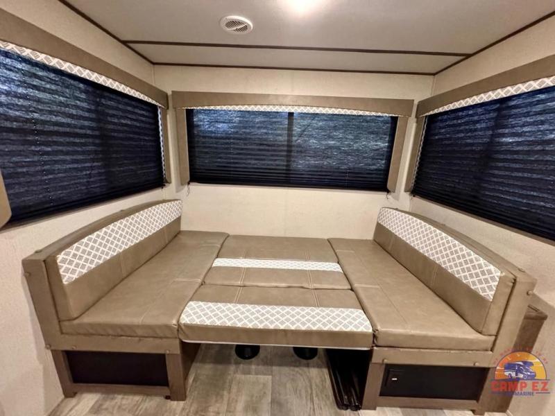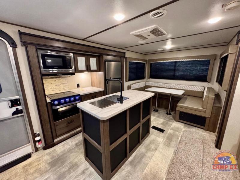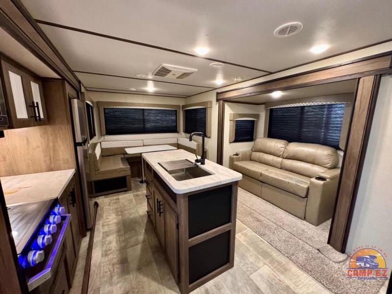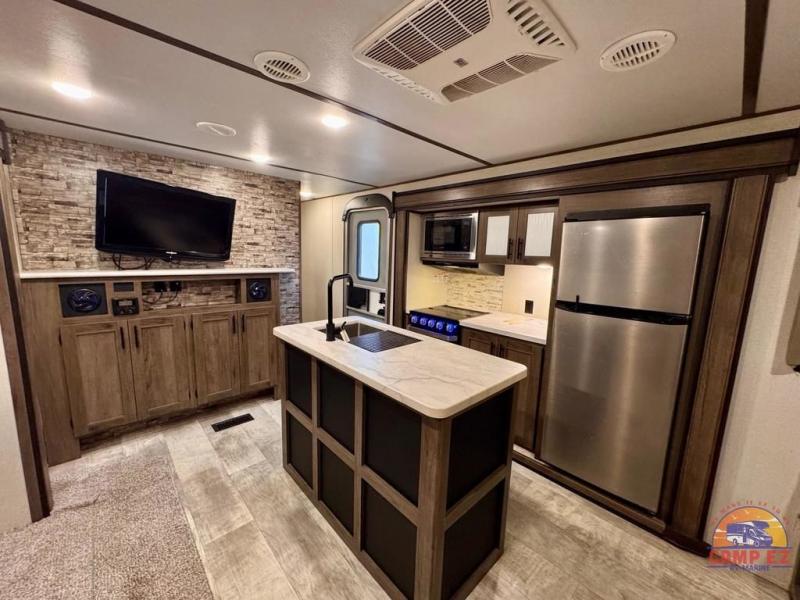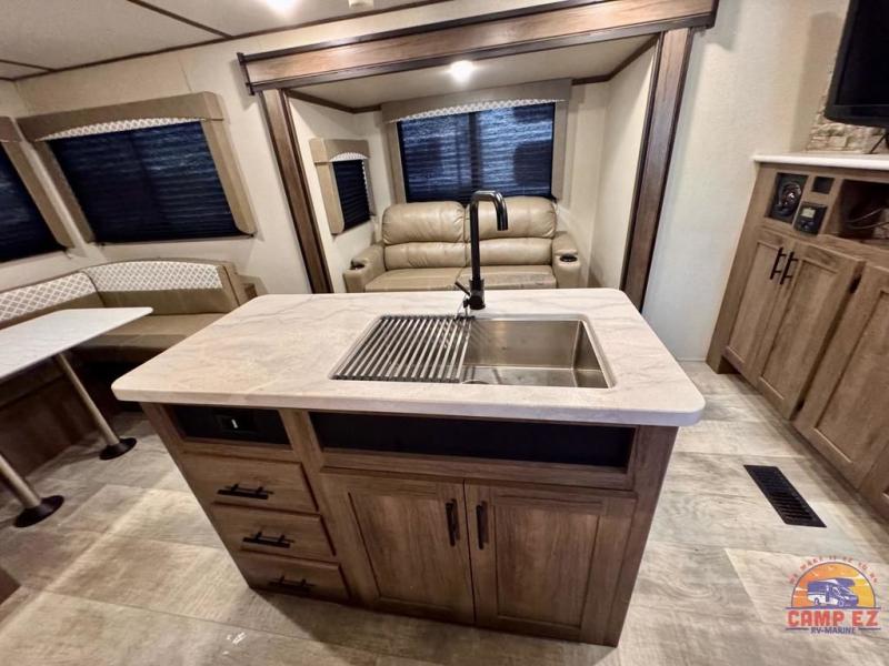 This Avenger travel trailer lets you take part in something amazing each and every time you take it out on an adventure! With its jackknife sofa, U-shaped dinette, and queen-size bed in the private master suite, you have plenty of room to sleep six people, and the two slides that have been included in this model are what deliver a spacious and inviting interior. You will also thoroughly enjoy the addition of the kitchen island which will make meal prep and clean up a breeze.