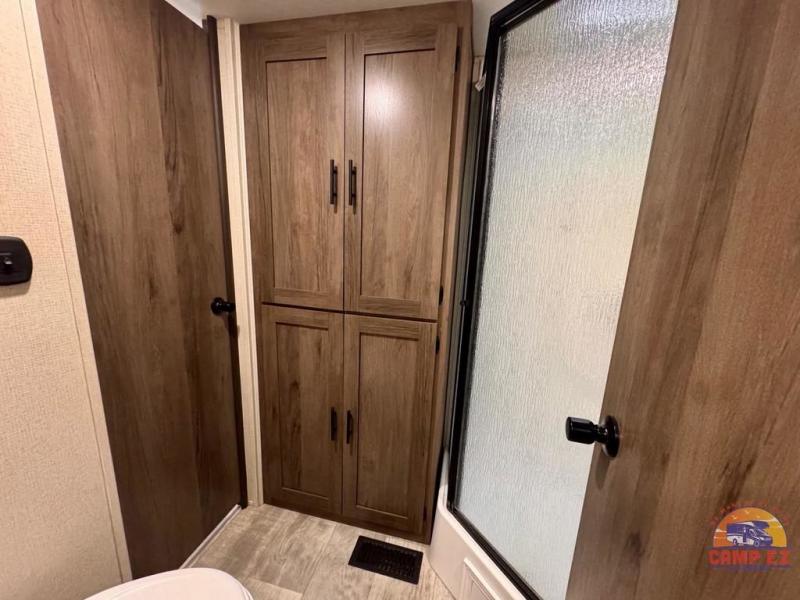 Don't waste any time getting out to your favorite getaway spot with an Avenger travel trailer from Prime Time RV! The Avenger will provide long-term quality and durability because of its exclusive EVERLAST construction, Dexter EZ-Lube axles, diamond-plate rock guard, and Solid Stance fold-down steps. Plus, the Avenger will also deliver industry-leading beauty on the interior with its designer window treatments, its seamless Carefree Congoleum flooring, its large fully vented windows throughout, and its premium fabrics. You will also be grateful to find a massive under-bed storage space so that you can keep extra luggage hidden away and out of sight.