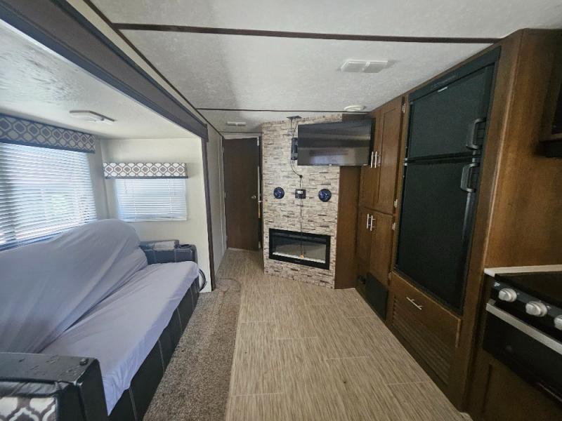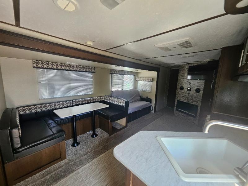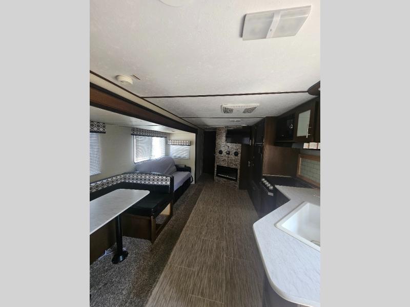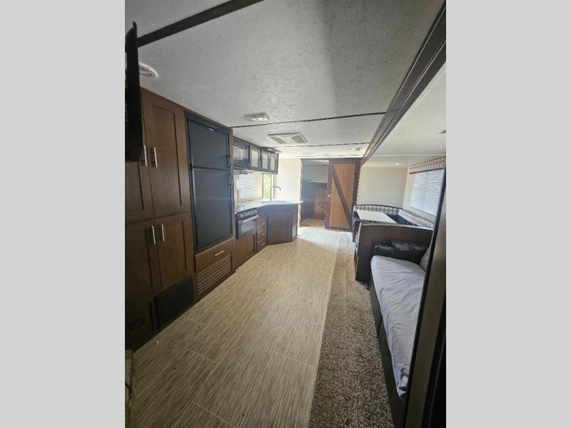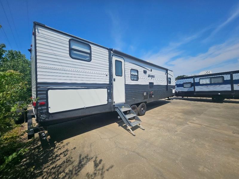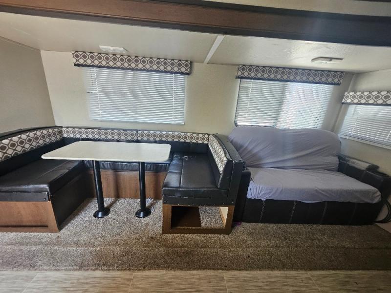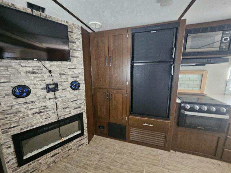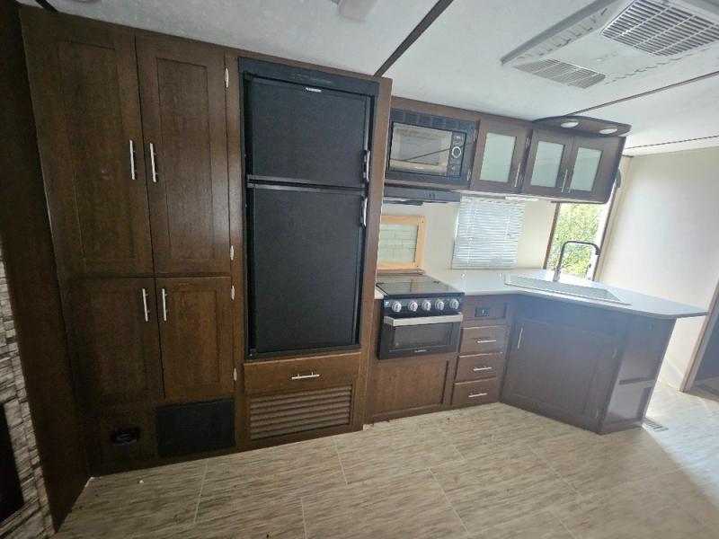 You will be excited to spend your weekend lounging in this Avenger travel trailer as you explore the vast wilderness. The private bunkhouse will allow you to house guests that join you on your excursions, and with the queen-size bed in the master suite, you will find relaxation for yourself in this trailer. The full kitchen will give you everything you need to prepare hearty meals to fill your empty bellies, and if you prefer to stay outside until the last light of day, the outdoor kitchen will be even more handy for meal preparations.
