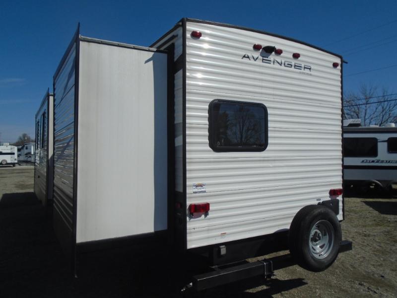 Don't waste any time getting out to your favorite getaway spot with an Avenger travel trailer from Prime Time RV! The Avenger will provide long-term quality and durability because of its exclusive EVERLAST construction, Dexter EZ-Lube axles, diamond-plate rock guard, and Solid Stance fold-down steps. Plus, the Avenger will also deliver industry-leading beauty on the interior with its designer window treatments, its seamless Carefree Congoleum flooring, its large fully vented windows throughout, and its premium fabrics. You will also be grateful to find a massive under-bed storage space so that you can keep extra luggage hidden away and out of sight.