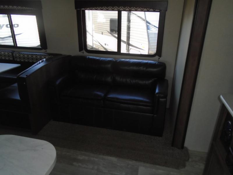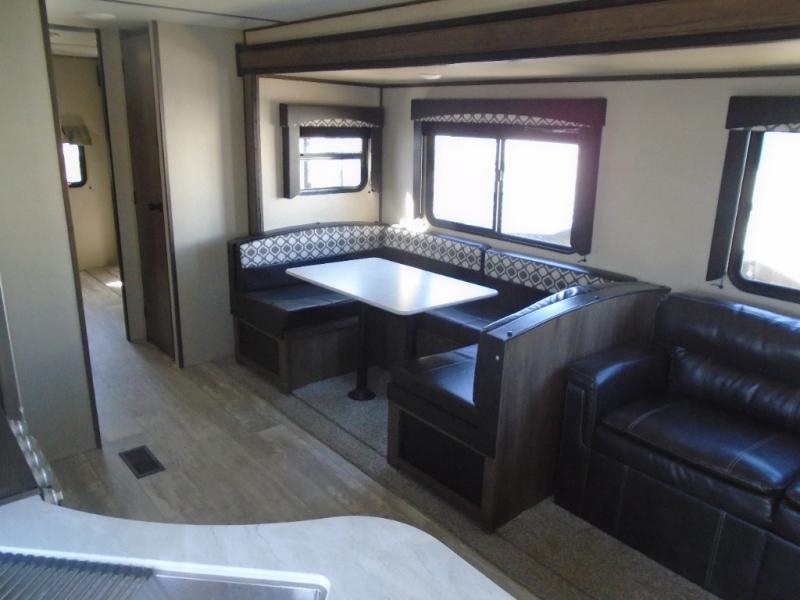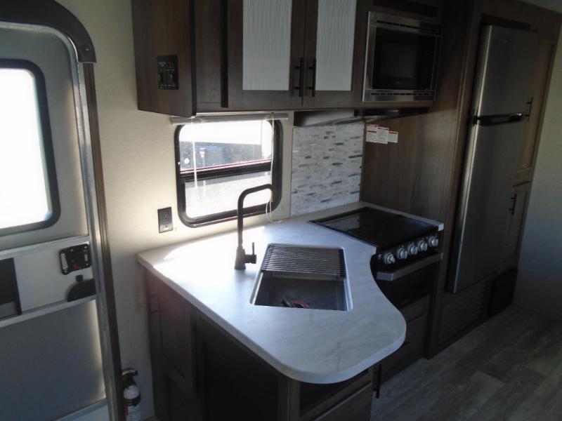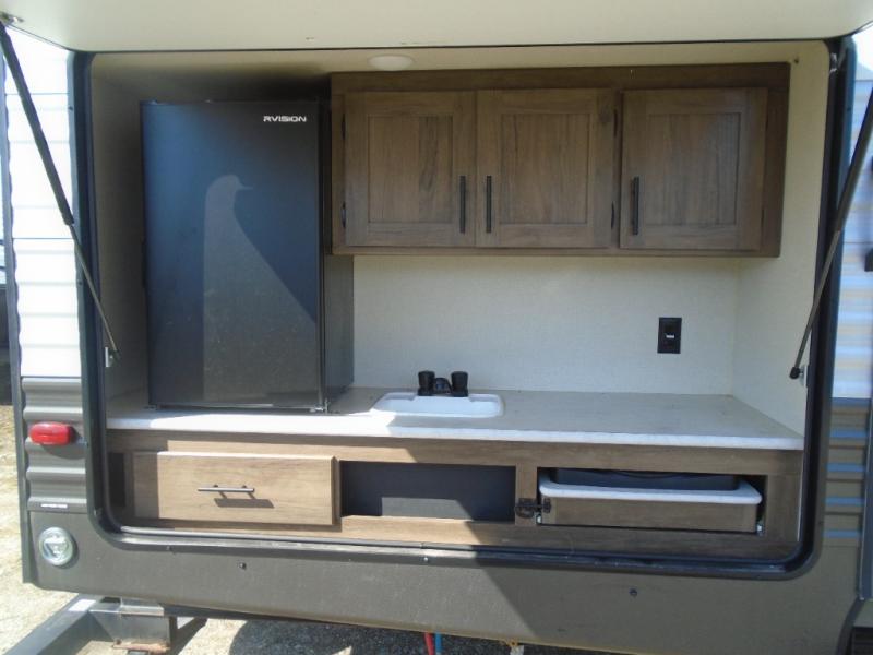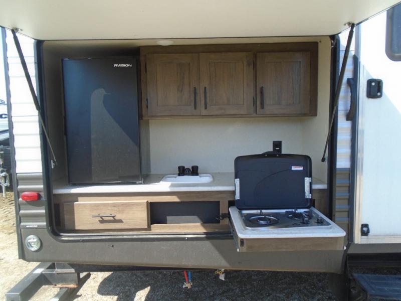 Take charge of your adventures in this fully loaded Avenger travel trailer! The whole family will be cared for throughout all of your many getaways with the private bunkhouse in the back and the private bedroom up front. The large slide in the main living area not only holds the U-shaped dinette and jackknife sofa, but it also adds more space to this area so that you can live freely. When you're working in the kitchen, you'll appreciate that this trailer comes with two pantries, and one of those pantries is even a walk-in pantry. You'll find it easy to access the outdoor kitchen because of the two entry doors, and with one of those doors leading directly into the full bathroom, you won't have to search far while you're playing outside.