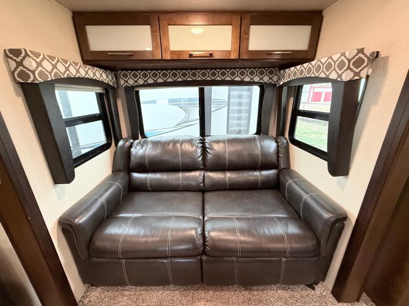Come step inside this spacious fifth wheel that has all the amenities your family is sure to love. With a private front bedroom, mom and dad will feel as comfortable as they do at home. The kids or grandparents will find sleeping space on the hide-a-bed sofa. Enjoy the rear entertainment area in this model that includes two theater seats! Cook up a meal in the large kitchen with ample counter space, a double sink for easy clean-up, a pantry, and a hi-top dinette with a booth the kids will love to sit at. You'll appreciate the bathroom in this unit that features a large sink and a medicine cabinet with a mirror to get ready for the day. Come see why this Crusader fifth wheel is perfect for your camping adventures!