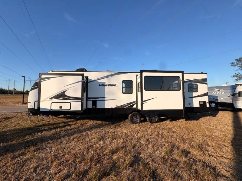 Wherever your camping adventures lead you, you will want a luxury LaCrosse travel trailer from Prime Time RV. Throughout each model you will find plenty of attention to detail from the shaker-style cabinet doors with glass inserts, the premium vinyl flooring, and the large medicine cabinet to the "One Touch" electric awning. You will find residential window treatments, and in the living room there is an exclusive oversized MAX slide out offering nearly 40 cu. ft. of additional living space. MAX protection is found in the exclusive ETERNABOND construction which includes an enclosed and heated underbelly plus heated holding tanks and more. The mandatory Advantage Package includes lots of goodies, like a Universal Docking Center, an electric tongue jack, solid-surface countertops, and so much more!