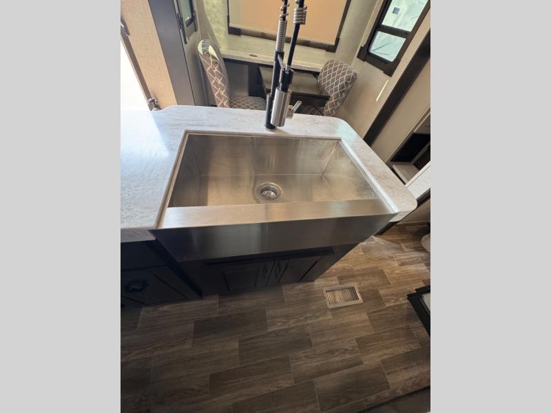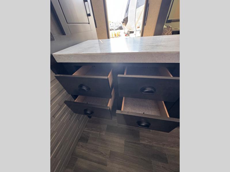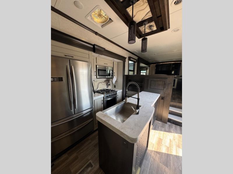 All Redwood fifth wheels are filled from top to bottom with luxury. With the Full-Time Living Package included, you can easily make a Redwood fifth wheel your home. This package features a FIT 2.0 chassis, maximum linoleum throughout, insulated slam latch baggage doors, and more! Each unit has plenty of residential features, including a complete kitchen with residential appliances and storage spaces, plus solid surface countertops and an oversized farmhouse sink to make you feel right at home. These fifth wheels also include the Redwood Parks Package, which feature Williamsburg Furniture Collection, solid hardwood cabinetry throughout, USB ports throughout the unit, plus so much more! Come make one of these Redwood fifth wheels yours today!