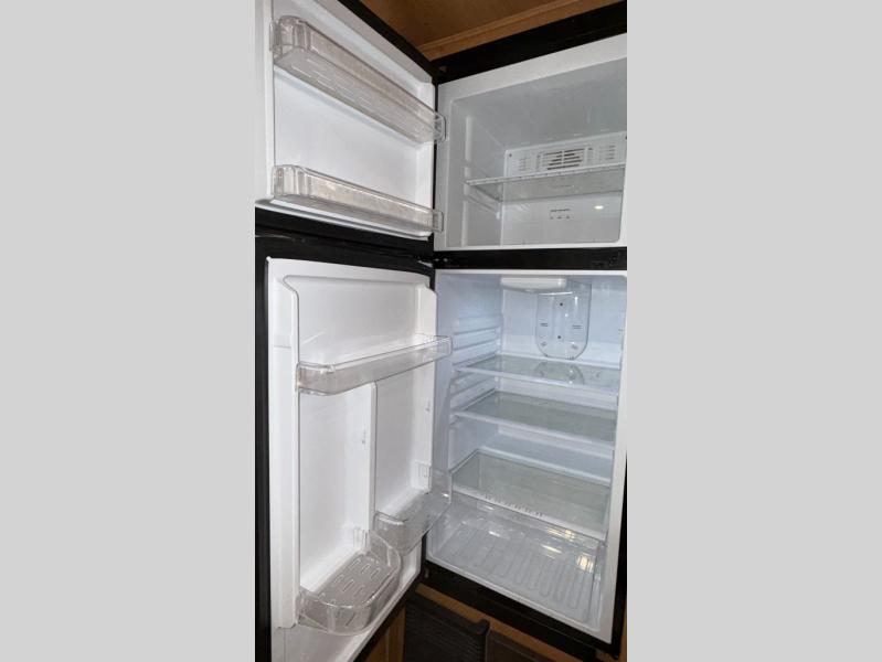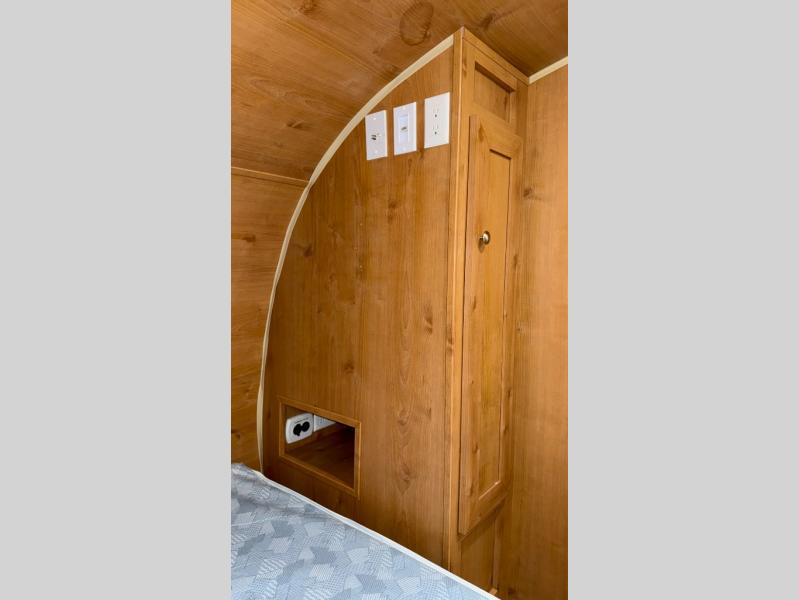 Let the family tag along on your next outdoor excursion with this Retro travel trailer! This trailer's ability to sleep five people is what makes it helpful for families who like to get outdoors and explore. You will appreciate having a booth dinette so that you can eat dinner or play games, and the RV queen bed will be a relaxing place to unwind after a long day of fun. You will also have a closet by the bed so that you can keep your clothing easily accessible.
