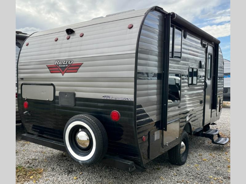 Make your next trip unforgettable with a timeless Retro travel trailer or toy hauler from Riverside RV! The Retro trailer is extremely lightweight and can be towed effortlessly which makes it very desirable to those who enjoy camping at a moment's notice. You will appreciate having USB ports so that you can keep your phone full of battery life throughout the trip, and you can easily get a meal together with the help of the microwave. For excellent entertainment at the end of a long day, you'll want to switch on the Bluetooth stereo with interior and exterior speakers, and since each model has been prepped for solar power and a back-up camera, it won't take much to take your unit to the next level of convenience!