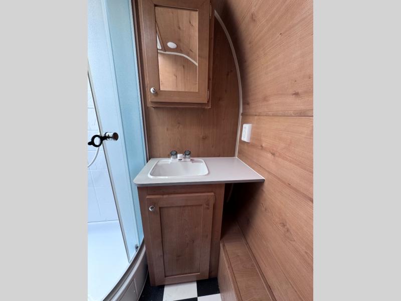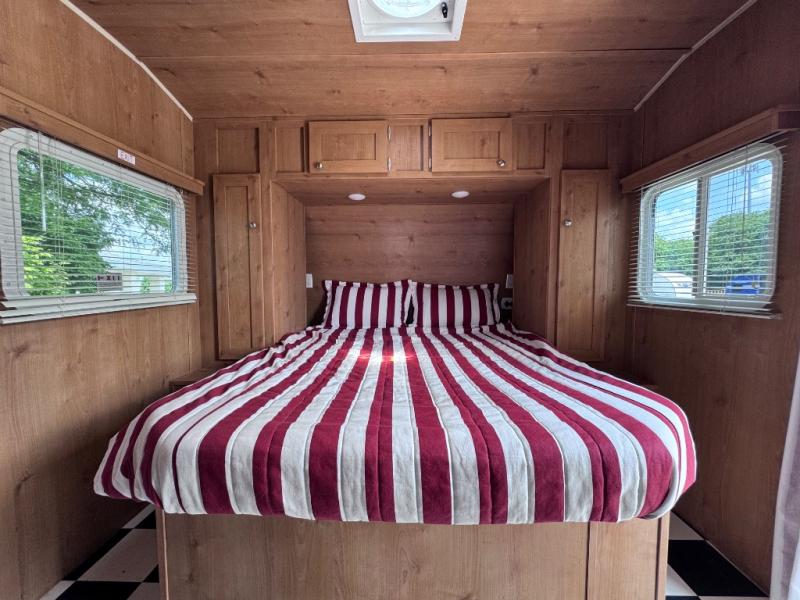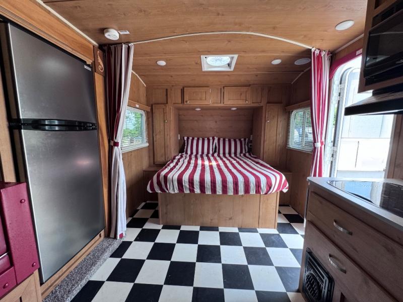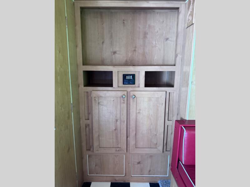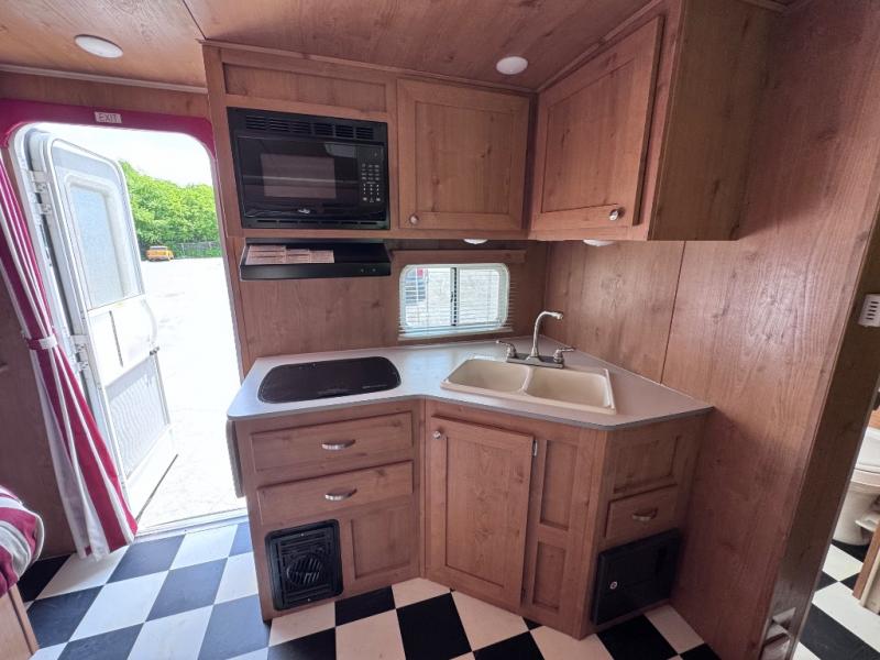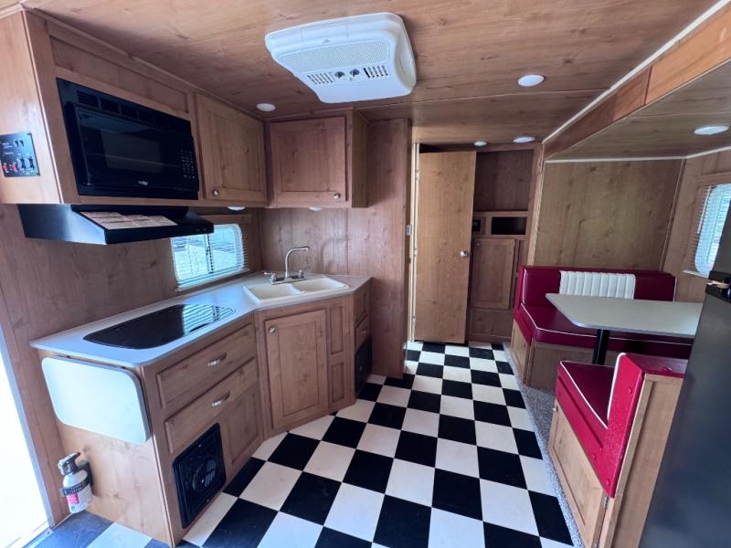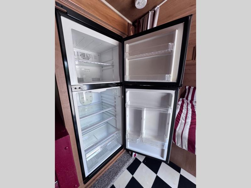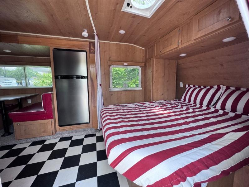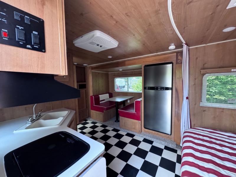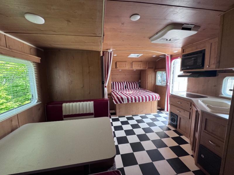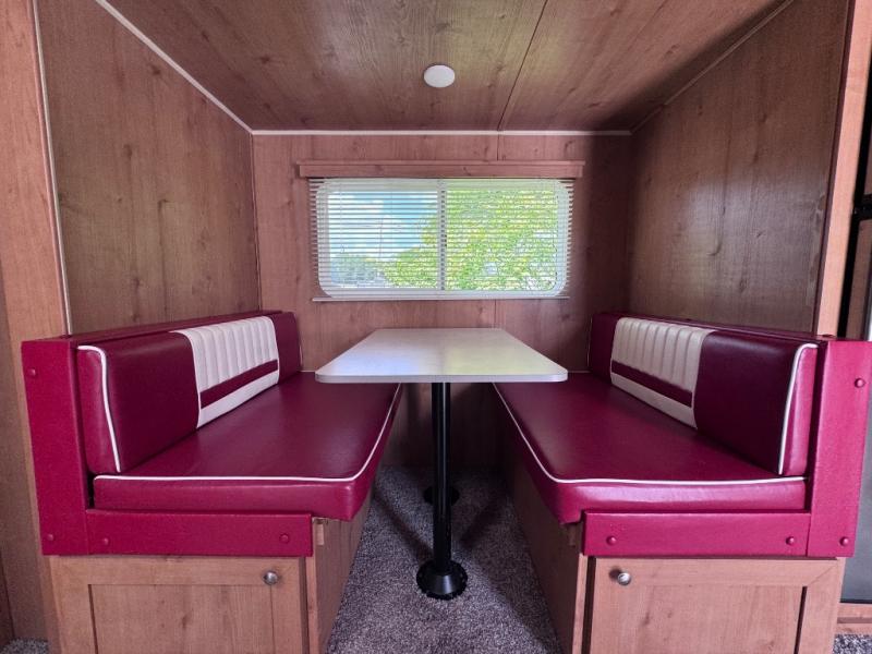 This cute and vintage Retro travel trailer is just what you need to enjoy the campground this summer! With a single slide, the interior has more living space so that you can easily sit down at the booth dinette and enjoy an afternoon snack. You'll love spending your nights on the queen-size bed, and you will look forward to the morning when you can grab a hot shower in the rear corner bathroom.