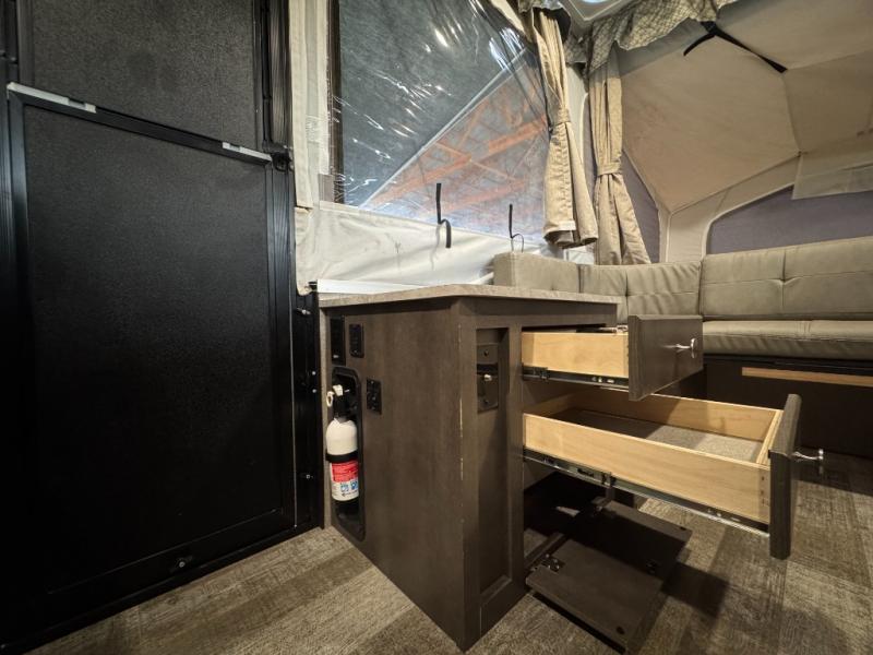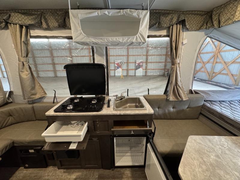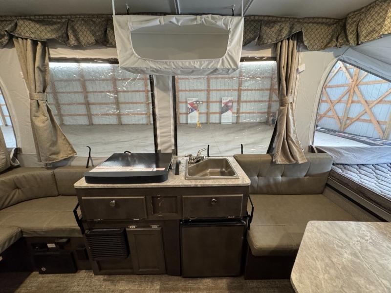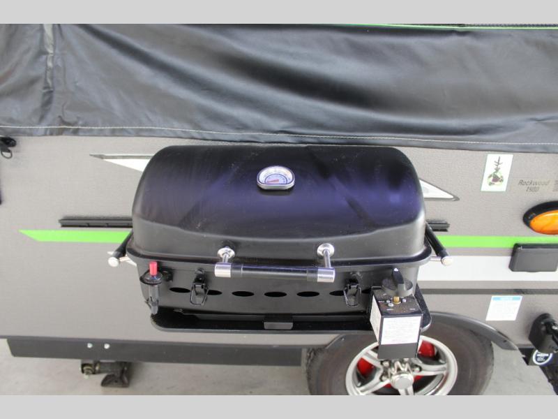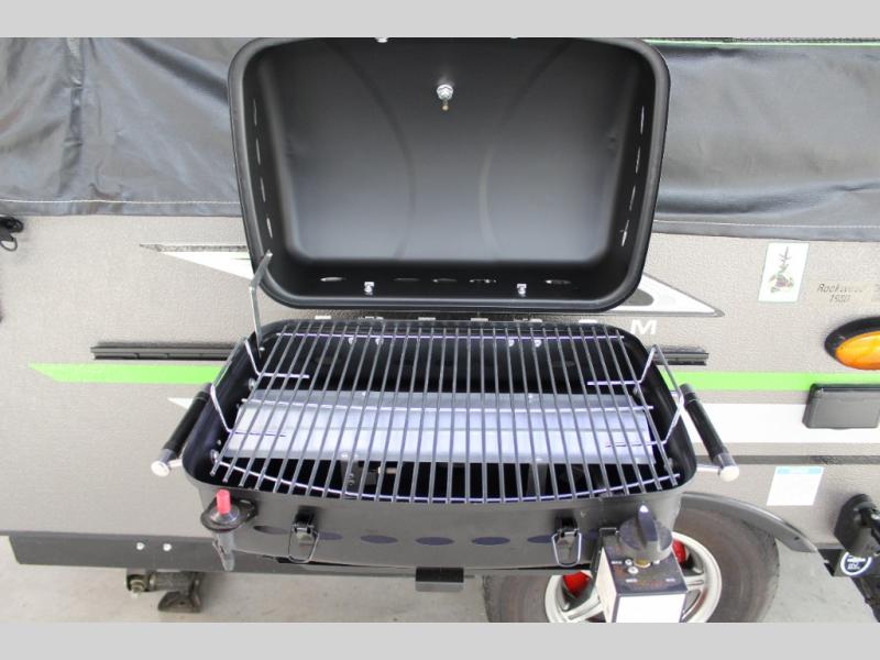 If you enjoy camping in the great outdoors with friends or family, then this Forest River Rockwood Freedom Series folding pop-up camper is just for you! There is plenty of space for late-night games to be played on either the 35" x 80" booth dinette or the U-shaped dinette which can both be converted into sleeping spaces. The swing galley allows you to set your sink on either the floor while traveling or on top of the sink base while in use. If you have a grilling master, then they are sure to enjoy using the outdoor gas grill. A 9' awning with an LED light strip gives you protection from the sun so that you can continue to enjoy your outdoor adventure!