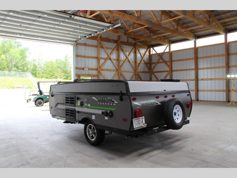 Forest River's Rockwood Freedom Series folding pop-up campers make time spent with family and friends exactly what it should be - relaxing, enjoyable, and easy to do! These units offer luxurious features from home, such as quilted-top mattresses, residential-style cabinet doors, wood drawers with full-extension metal guides, and leather-appearance seating. These units also feature a one-piece vacuum-bonded fiberglass roof with a metal interior ceiling, a one-piece undercoated structure wood floor, a five-piece sectionalized Hurculite Supreme tenting, full-perimeter aluminum bed frames, and tinted vinyl windows.