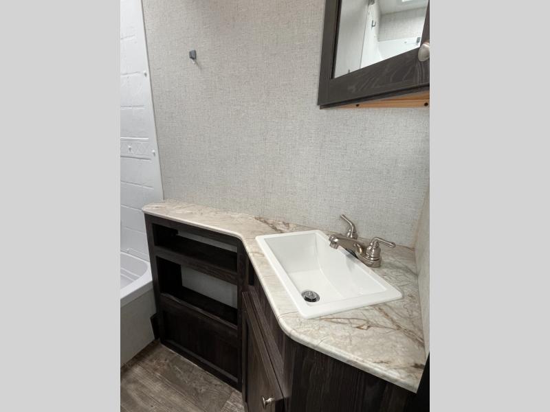 The Mossy Oak Ultra Lite travel trailer by Starcraft provides a forced air heated, enclosed underbelly plus fiberglass roof and floor insulation for four seasons of traveling. This kid and pet friendly trailer doesn't have carpet making them easy to clean up, and the oversized pass-through storage compartment with lighting also happens to be the drop spot for the bedroom laundry chute. If you are an adventure seeker and passionate about the outdoors but don't want to give up many of your comforts of home, a Mossy Oak Ultra Lite is for you!