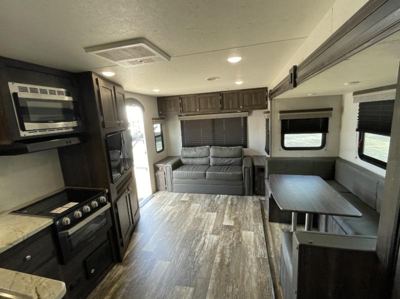 The 262RL floorplan is one of the most sought-after layouts for a reason. The rear living area features comfortable seating, large panoramic windows, and a wide-open feel that makes extended stays enjoyable. Whether you're parked at your favorite campground or exploring national parks, you’ll appreciate the residential-style layout that encourages relaxation.