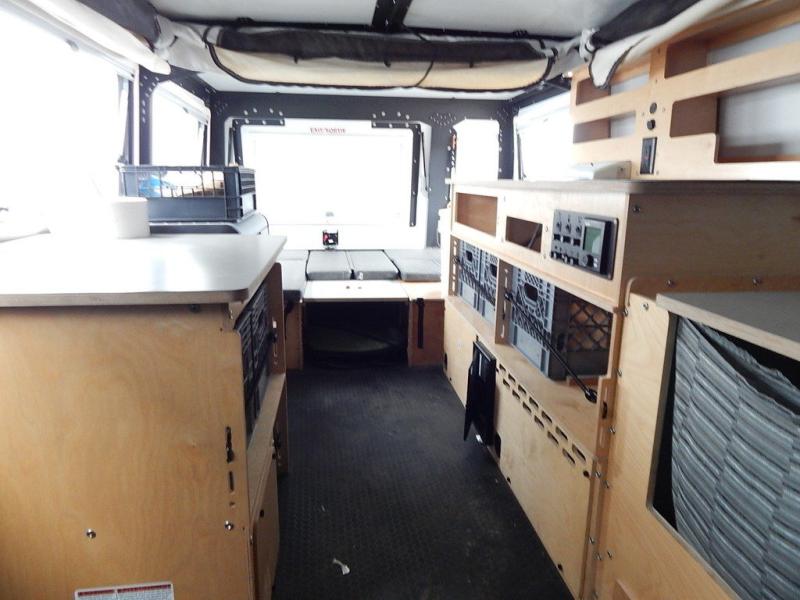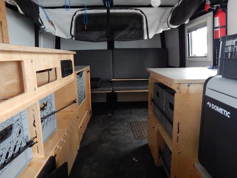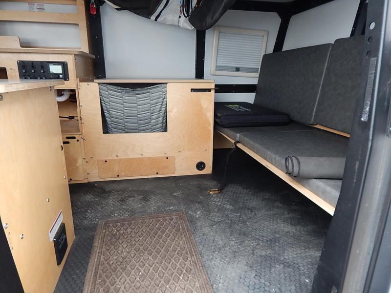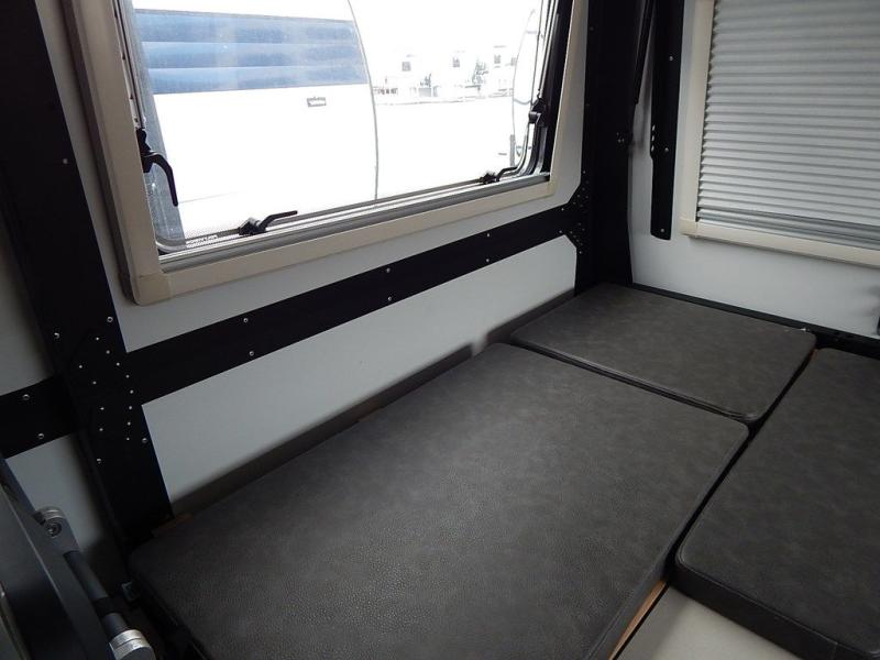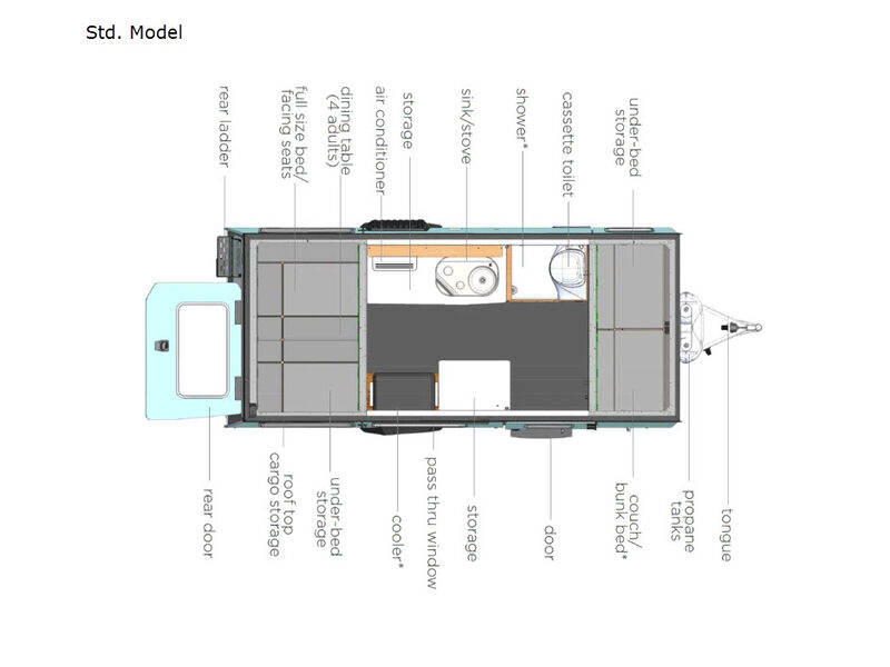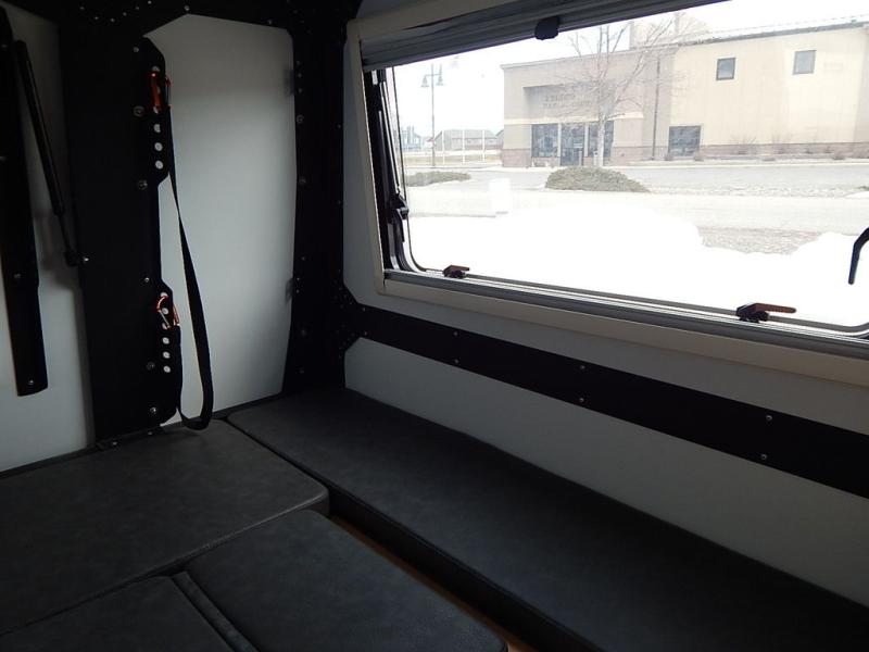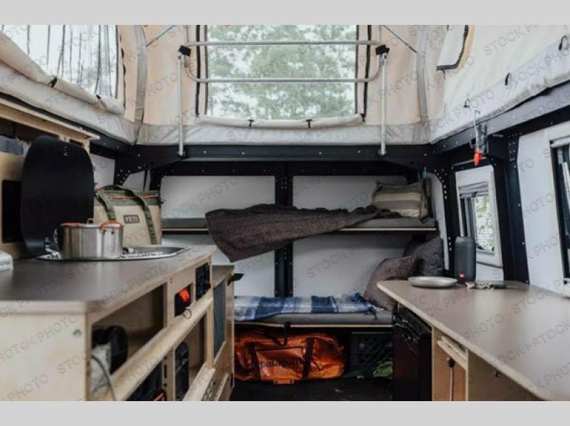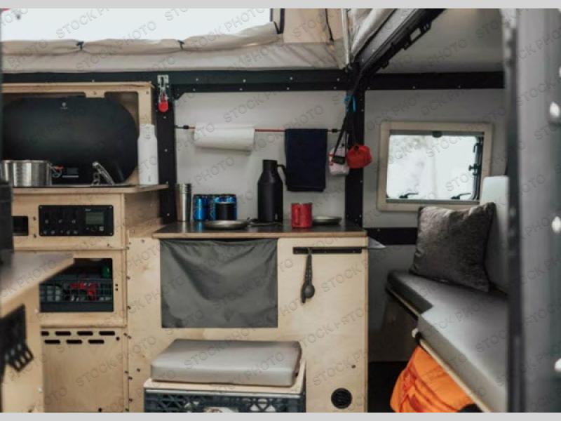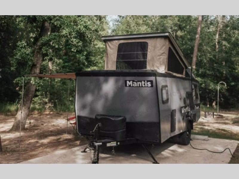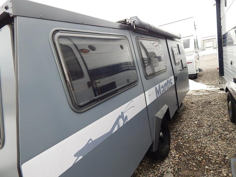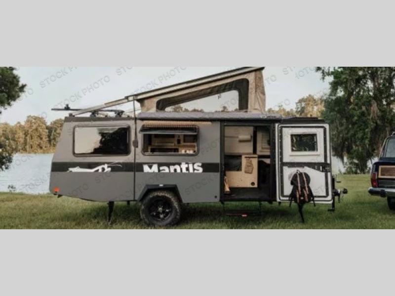 Why wait to take adventures when you can take them easily with this Mantis travel trailer towed behind your vehicle? With all-terrain tires, torsion axle suspension with electric brakes, and solar input pre-wired with SAE light, your destinations are limitless. You can cook on the two-burner stove, wash your dishes in the sink, eat a meal at the dining table, store lots of accessories and gear in the ample storage spaces, and sleep on your own full-size bed. You will also have a 12" ground clearance for outdoor adventures or making your way to a landing spot and an interior height from 5' 11" to 7' 10" to easily get dressed and move around. You may also decide to choose to add a few options such as a refrigerator/freezer, a spare tire, and/or a wet bath.