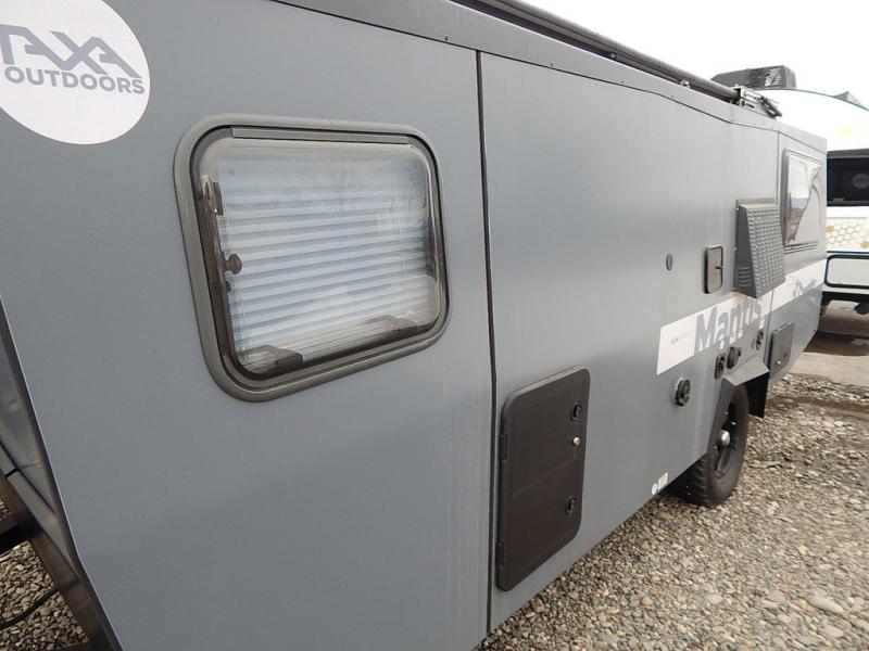 The Mantis travel trailer by TAXA Outdoors offers you a habitat without restrictions with the ability to find adventure anywhere. You can easily store the 19'-long trailer in most 7' garages when you get back from your trip. While away, you can cook a hot meal, sleep on your own bedding, and charge your accessories with 12V outlets and 12V USB outlets. The exterior shower will provide hot and cold water, the air conditioner and furnace will keep the inside temperature just right when the outside breeze isn't enough, and the under-bed storage gives you space for sleeping bags, clothing, and such. Start roaming freely today!