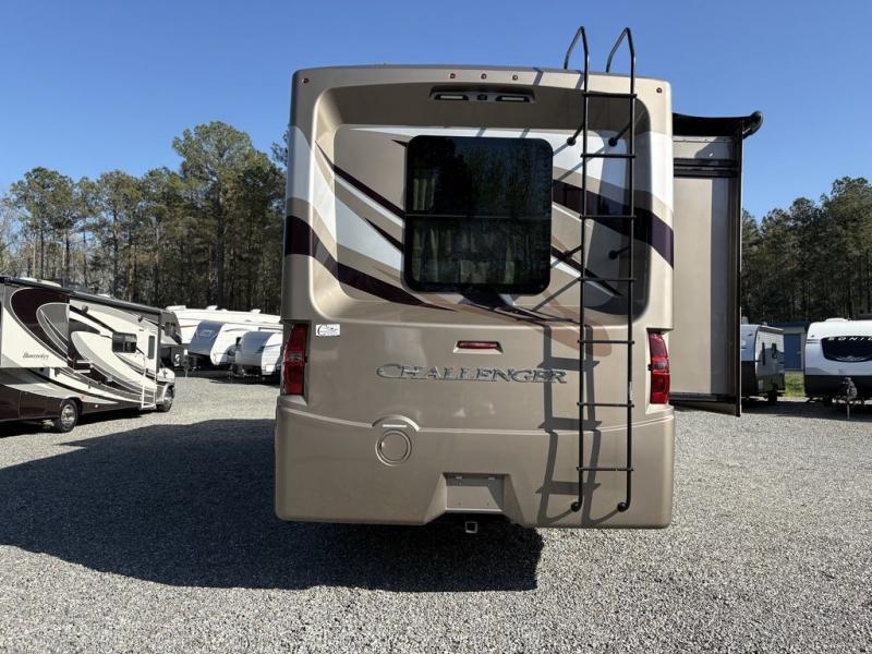 With each Thor Motor Coach Challenger Class A gas motorhome the driver can enjoy a smooth ride with 320 HP and 460 lb.-ft. of torque with the Torqshift 6-speed automatic with overdrive transmission. You can even take your car along with you thanks to the 8,000 lb. trailer hitch. The Rapid Camp+ multiplex wiring system provides many advantages like remote switches which are located in easy to see areas with capabilities such as dimming the lights, retracting slides and awnings, turning on the AC or furnace plus so much more! The interior will not disappoint with a luxurious kitchen design, solid wood veneer paneling, Leatherette furniture, and lambrequin window treatments. So, start adventuring today in a Challenger Class A gas motorhome!