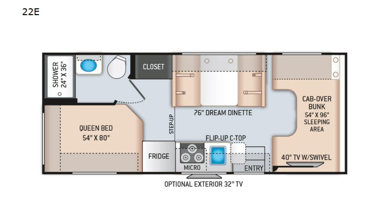 Thor Motor Coach Chateau Class C gas motorhome 22E highlights: