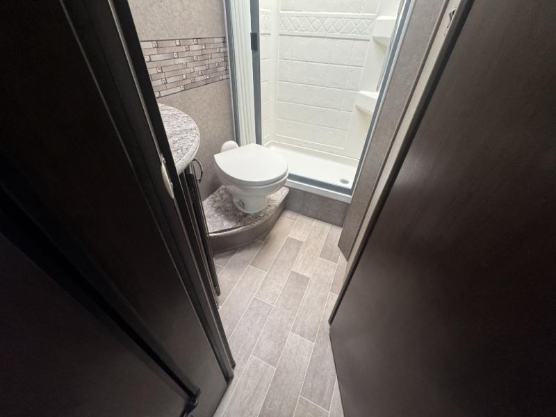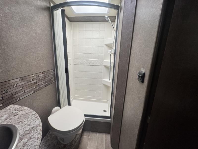 You will be able to take loads of adventures with this Chateau Class C gas motorhome! A rear bathroom with a 24" x 36" shower that has a curved anti-microbial curtain will provide plenty of convenience for washing up after a muddy trek, and the skylight above the shower will give you extra head space while you get cleaned up. You can even grab an extra change of clothes from the two closets next to the RV queen bed.