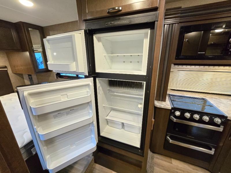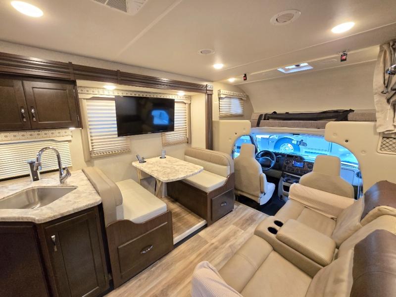 Enjoy each adventure to its fullest in this Four Winds Class C gas motorhome. This coach offers added comfort with a large slide in the living area where you can gather together with friends and family on the 68" jackknife sofa or 71" Dream Dinette. The kids will love having their own space to sleep each night with the 54" x 96" bunk over the cab, and you will certainly appreciate having your own private bedroom with an RV queen bed to retreat to. With the added 14' electric awning with LED lights, you can extend every party outdoors even after the sun has faded.