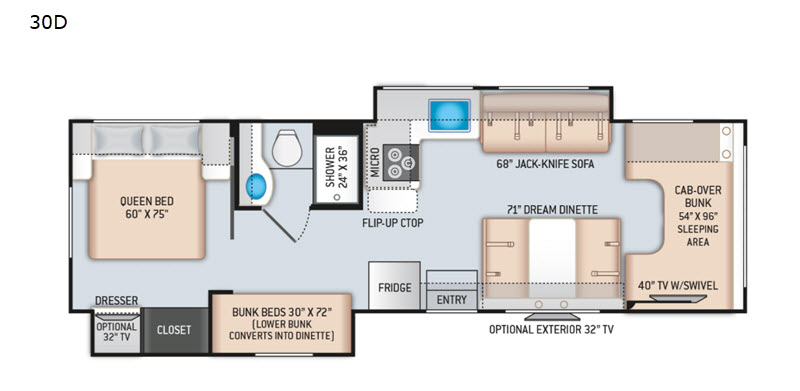 Thor Motor Coach Four Winds Class C gas motorhome 30D highlights: