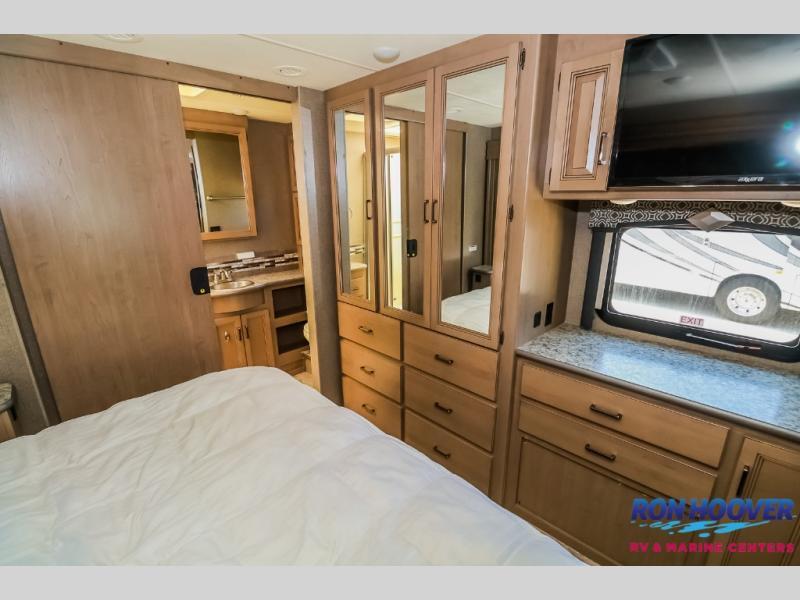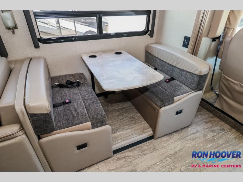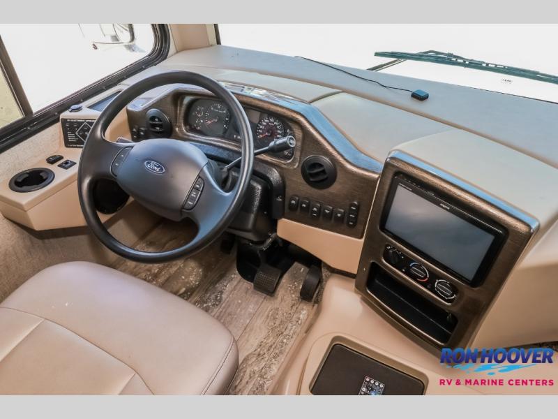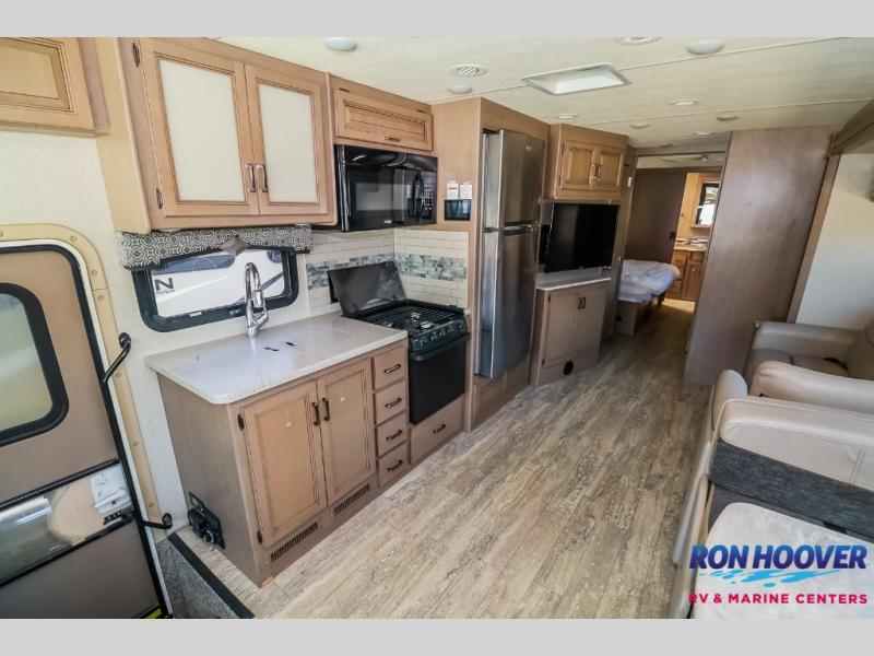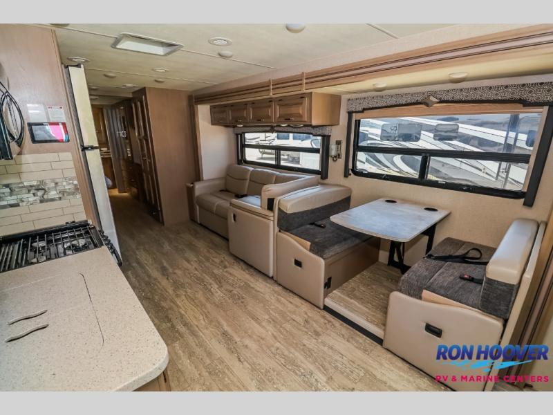 With any Thor Motor Coach Hurricane Class A gas motorhome you will begin with a welded tubular steel frame with a welded tubular aluminum roof and sidewall cage construction. Some exterior features include the one-piece fiberglass front and rear caps, the automatic leveling jacks with Touchpad controls, and the Pet-Link multi-purpose tie-down allowing you to keep your family pet safely near you. More features you are sure to enjoy while on your adventures, the touch screen radio with Bluetooth connectivity, SiriusXM radio, and monitor for your rearview and side view camera, the flip-out workstation, the easy to care for residential vinyl flooring, the Leatherette furniture, the USB charging ports and so much! Start your Hurricane adventure today!