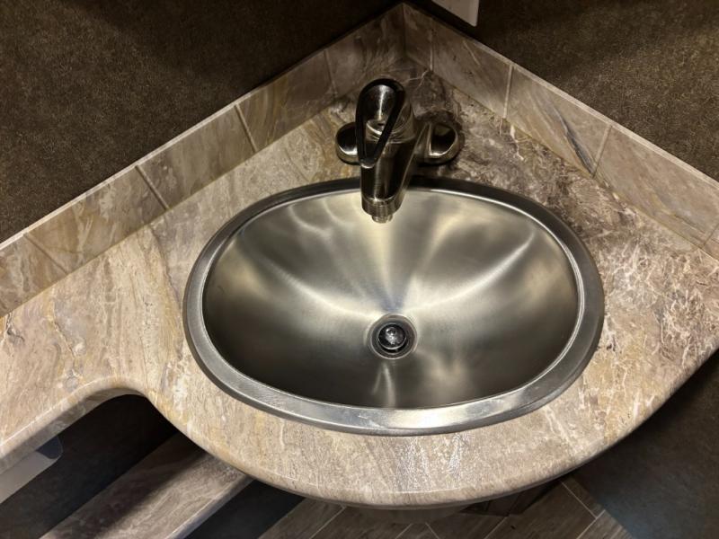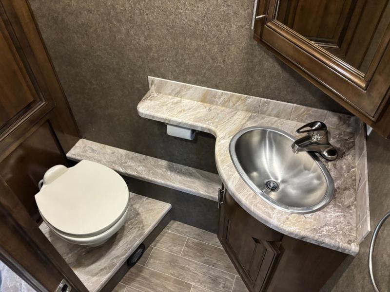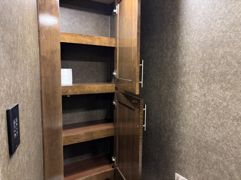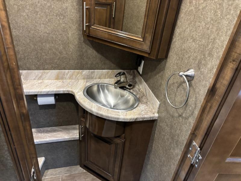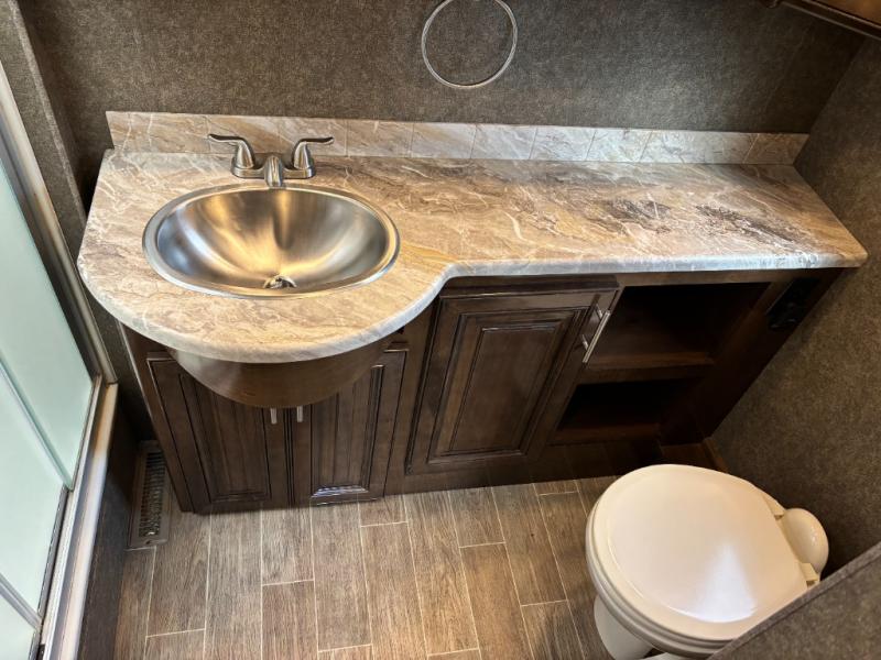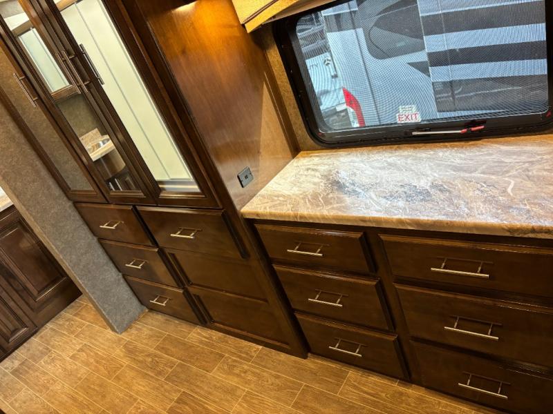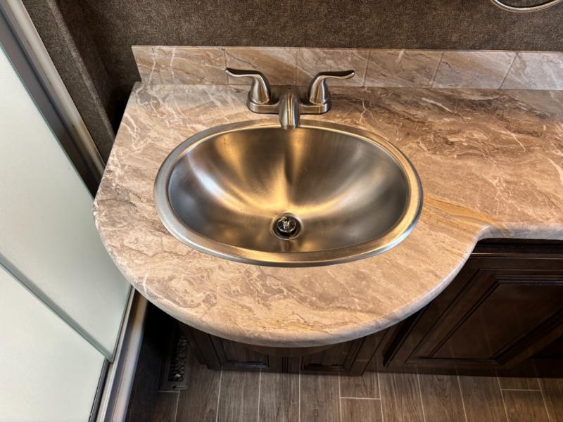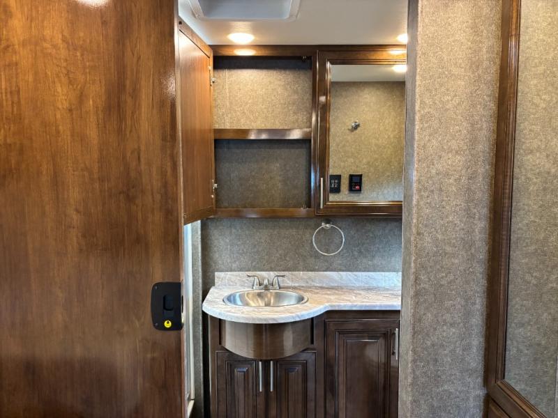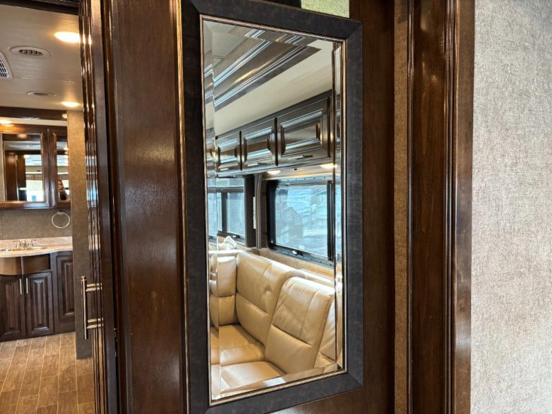 If you are looking for more interior space in your next RV and to include sleeping space for eight people, then this coach provides just that and more with a full wall slide out and a second slide out on the opposite side. In the living area you can relax on the furniture including the swivel captain's chairs and the theater seats. Above the sofa bed there is a retractable 49" TV and along the interior wall you will find a second TV for inside entertainment. Sleeping space can be found on the drop-down overhead cab bunk, on the furniture once set up for bedtime, and in the rear bedroom there is a Tilt-A-View inclining king bed for yourself! You will also love the kitchen appliances, the option to add a washer and dryer, and more!