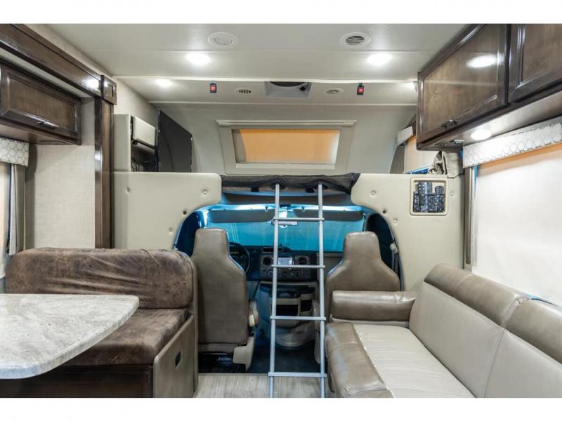 Start your greatest adventure as soon as the tires hit the road in any one of these Thor Motor Coach Quantum Class C gas motorhomes! The welded tubular steel floor, the Ford E-series chassis, and the vacu-bond laminated roof, walls, and floors with block foam insulation ensure that you will have years of enjoyment. You will also enjoy all of the convenient features throughout the interior like the touchscreen dash radio with navigation and a back-up monitor to keep you safe on the road. With solid surface countertops, high-gloss solid wood cabinetry, and LED lighting, you will feel right at home. And for your safety, there are smoke, LPG, and carbon monoxide detectors, as well as a fire extinguisher. So get on the road to adventure today with a Quantum Class C gas motorhome by Thor Motor Coach!