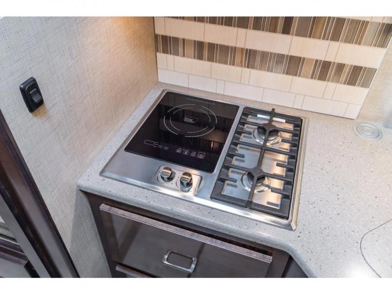 Step inside this Quantum Class C gas motorhome and see just how luxurious of a trip you will have! From the pull-out pantry for storing your favorite snacks and the RV queen bed for a good night's rest to the 40" TV with a swivel and the built-in skylight over the 54" x 96" bunk above the cab, you will be impressed. If you don't feel like watching TV indoors, then head outside and enjoy watching the big game on the exterior 32" TV while you stay protected from the sun with the 16' electric awning with LED lights. The dual-entry bath makes it easy for anyone to access, especially those who get the pleasure of staying in the rear master suite!