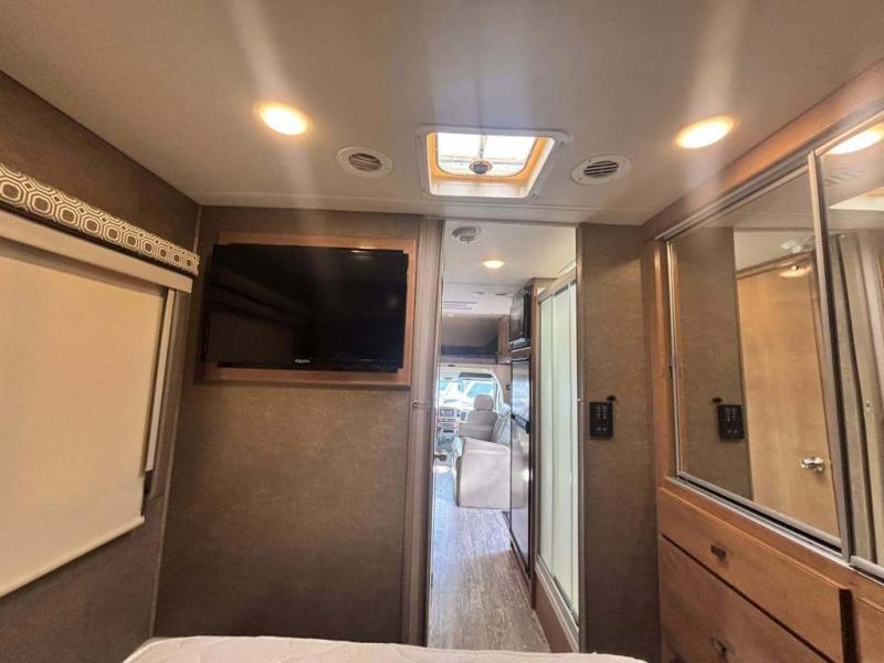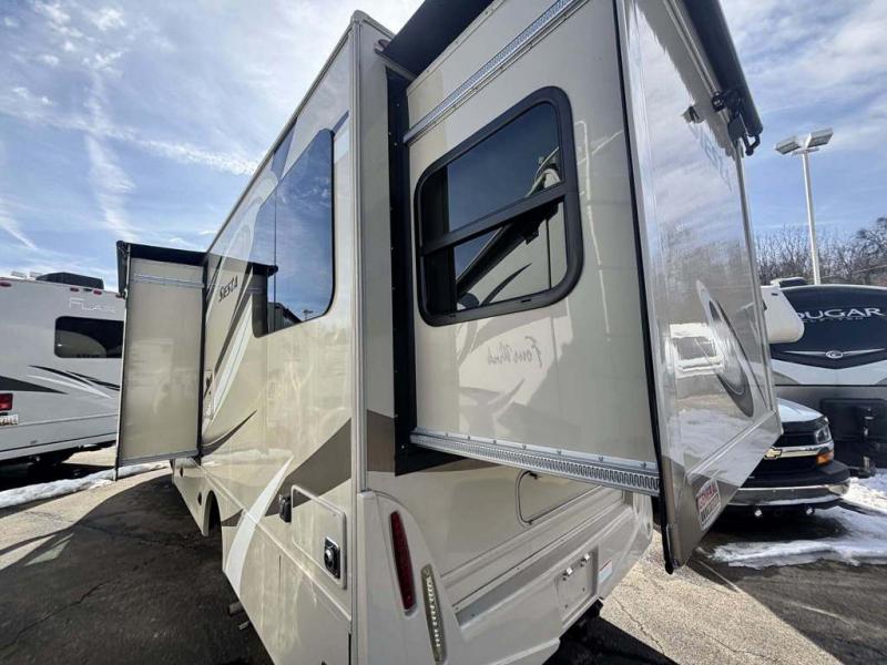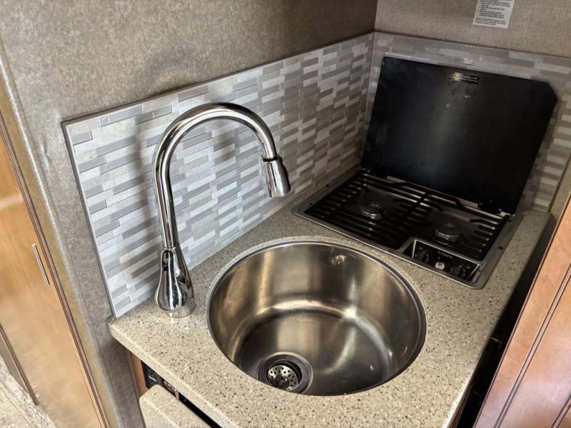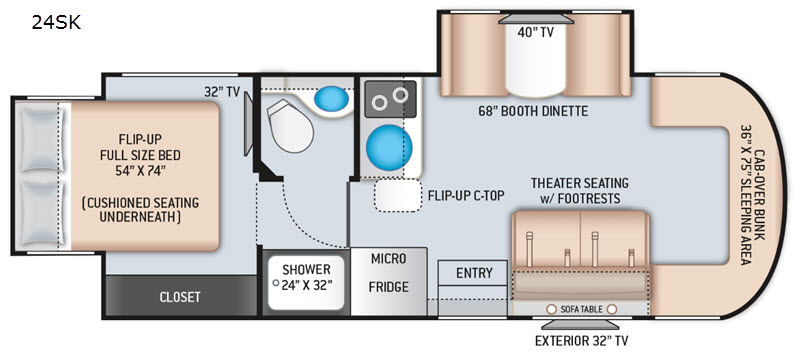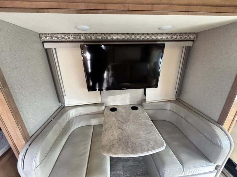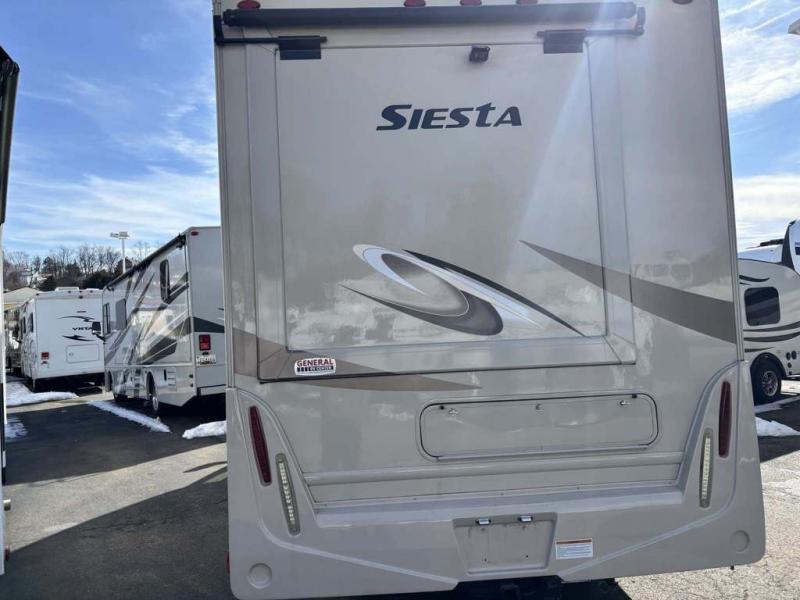 Envision you and your family cruising down the highway to find adventure and new scenery. This Siesta Sprinter has comfortable captain's chairs that swivel, plus seat belts for two more riders. Now imagine you have decided on an RV park to stay for the week. You can make meals in the kitchen using the flip-up countertop while your spouse naps on the booth dinette and the kids watch a movie while relaxing on the theater seats with footrests. Once it is bedtime the kids can sleep on the cab-over bunk or on the dinette once folded down. You will enjoy your own semi-private bedroom with a unique rear slide out featuring a flip-up full bed, a privacy curtain, a closet and a 32" TV. There is a second interior TV, and an exterior TV for outdoor entertainment. Take a look, you will be sold!