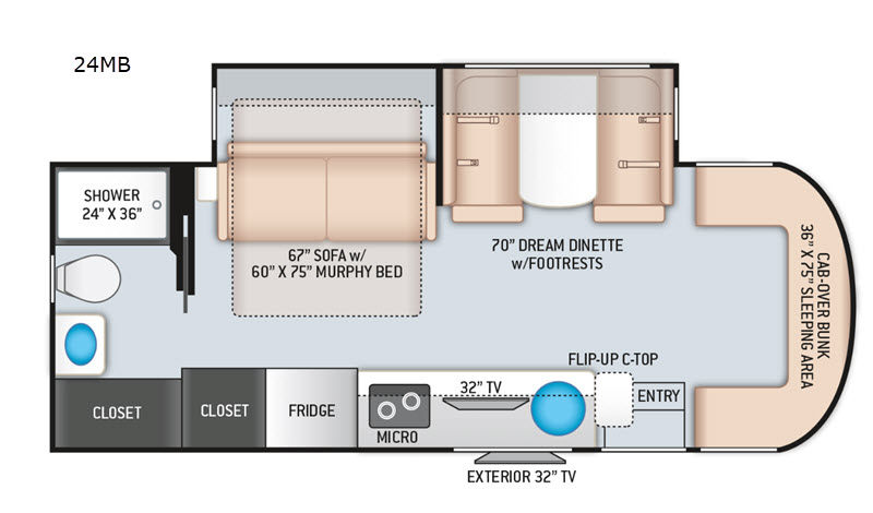 In any Synergy Sprinter Class C diesel motorhome by Thor Motor Coach, you will find a coach that is made to fit! When you walk into one of these RVs powered by a Mercedes-Benz Sprinter, you will love all of the features and flexibility that the Synergy Sprinter offers! Each unit features a 3.0L V6 engine, a 5,000 LB trailer hitch, and a welded tubular aluminum roof with a sidewall cage construction. Each model has appealing features, such as an 80" interior ceiling height, residential vinyl flooring, LED lighting, and a double-door refrigerator with stainless steel door inserts. The exterior 32" LED TV on a swivel bracket with Bluetooth soundbar and radio is sure to be a crowd pleaser, along with the Bluetooth coach radio system that has a DVD player and exterior speakers to pump up the fun!