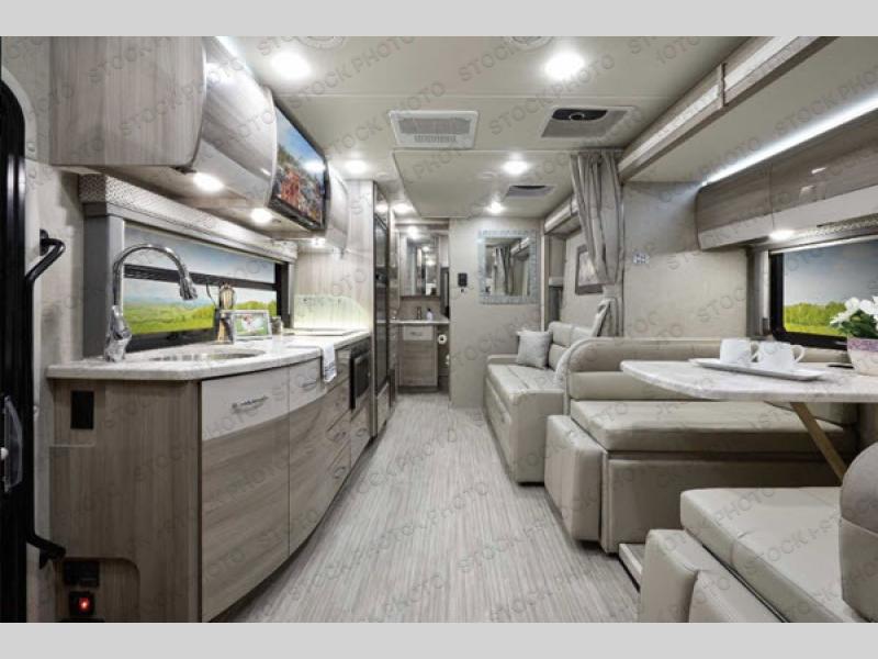 A solid construction, decked-out cab, and fully loaded interior are what create a dream home on wheels with the Thor Motor Coach Tiburon Sprinter Class C diesel motorhome! The Mercedes-Benz safety package includes everything that you need to take road trip after road trip in complete confidence with the active braking assist, attention assist, active lane keeping assist, wet wiper system, and distance regulator. The vacu-bond laminated roof, walls, and floors with foam insulation are what will keep the interior at a cozy temperature during the winter and cool during during the summer. A Bluetooth coach radio system with HDMI and app control will give you entertainment whenever you are interested in partying, and since the Tiburon Sprinter comes with the Rapid Camp multiplex wiring control system, you will be able to control the slides and lights from your own smartphone.