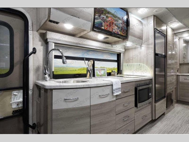 This Tiburon Sprinter Class C diesel motorhome will provide you with endless opportunities to travel in luxury and style! A rear bathroom with a 24" x 36" shower, skylight, and large linen closet will give you a place to clean up throughout all of your adventures, and a large slide will provide extra living space for you and your friends while you play cards at the 70" Dream Dinette or watch a movie on the 32" LED TV. Since this coach comes with a 60" x 75" Murphy bed, you can choose to have the 67" sofa in place during the day when you need an extra place to sit down and relax.