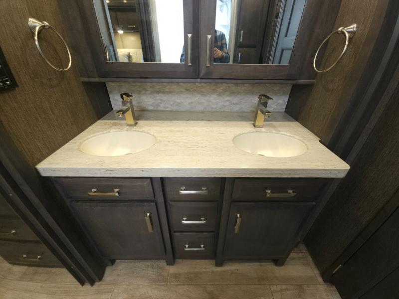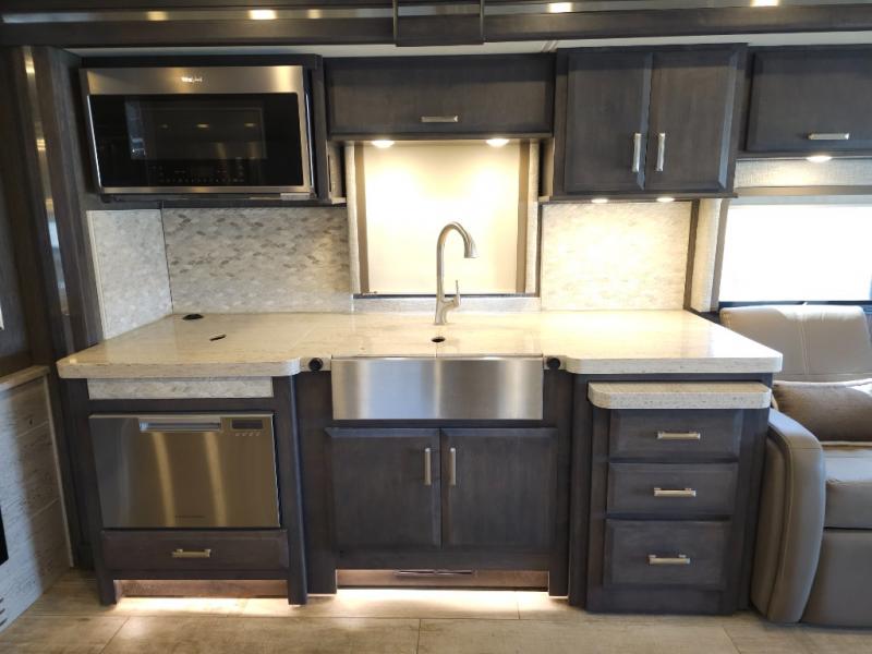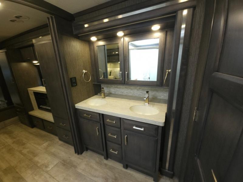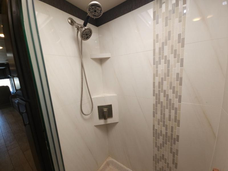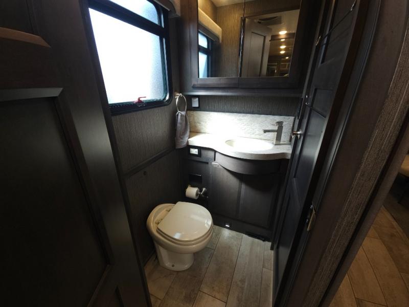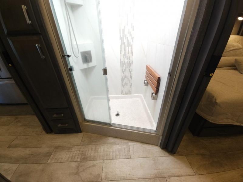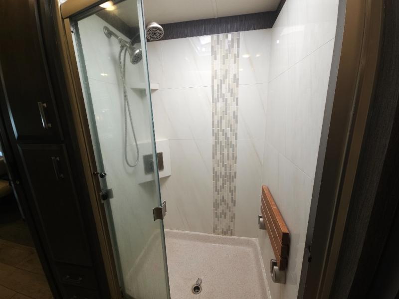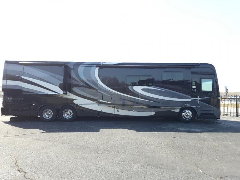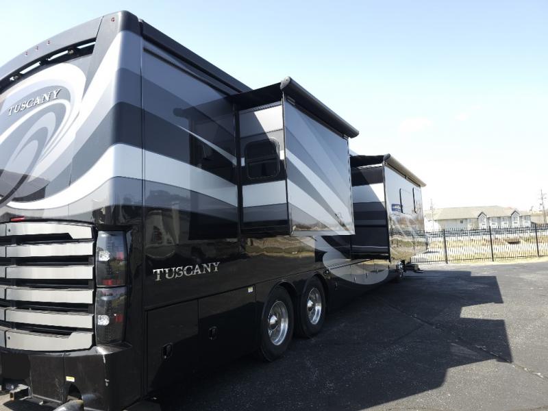You will look for any opportunity to get away when you have this Tuscany Class A diesel motorhome sitting in your driveway! After hiking all day or swimming in the lake, you will fully look forward to resting on the 72" sofa bed or 68" reclining theater seats with footrests, and if you're too tired to socialize with guests, you can retreat to your own tilt-a-view inclining king bed in the rear master suite. Wake up the next morning and head straight for the 44" x 40" shower in the spacious bathroom to get cleaned up for the day.