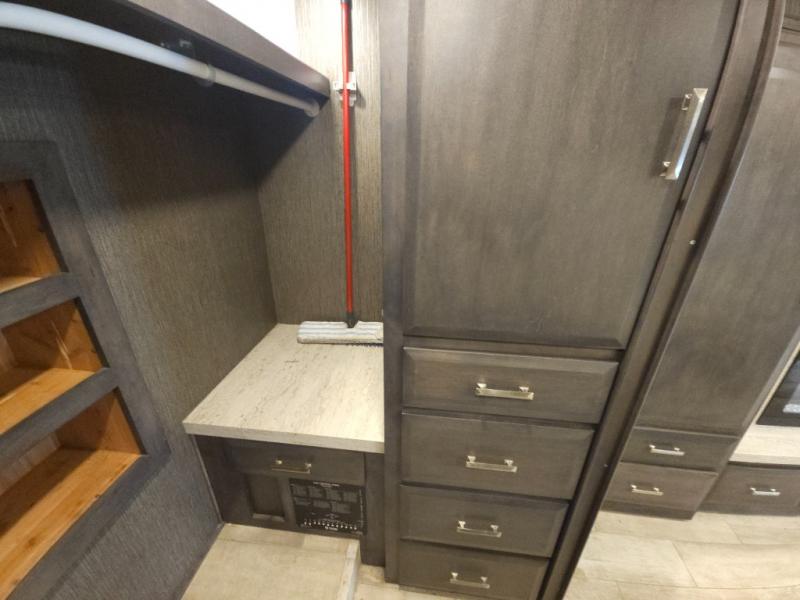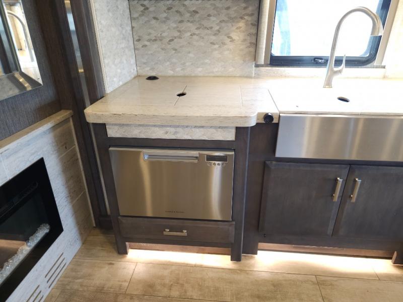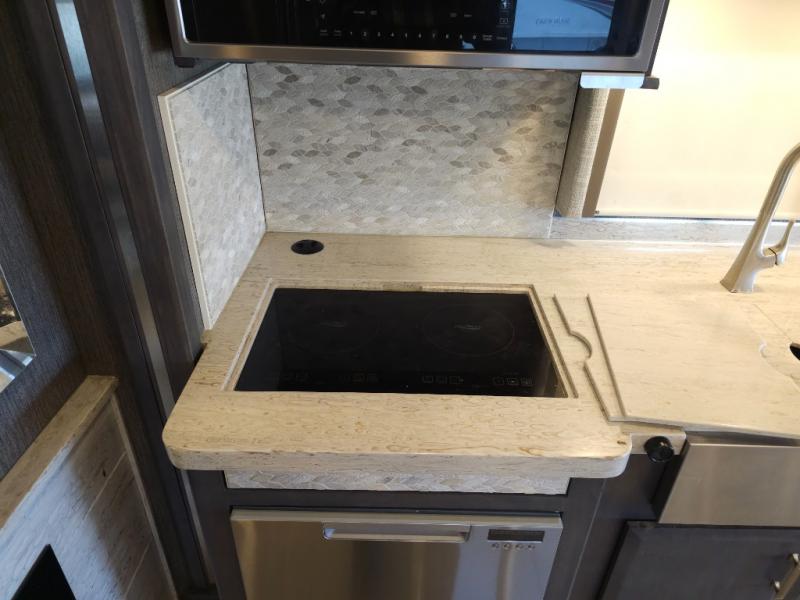 If you are ready for a luxury motorhome that offers beauty, style, and power with the most livable floor space, then choose a Tuscany by Thor Motor Coach. The Tuscany offers high-end amenities, such as a 20 cubic foot stainless steel residential French door refrigerator, a Fisher Paykel dishwasher, and a designer tile backsplash. You can even find polished porcelain tile flooring, decorative ceiling treatments with mood lighting, and high-gloss glazed cabinetry located all throughout the interior, and every Tuscany sits upon a Cummins ISL 8.9L engine to make sure that quality begins and ends with the foundation.