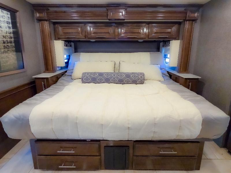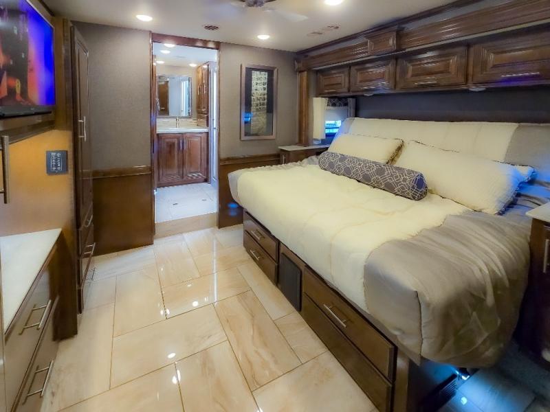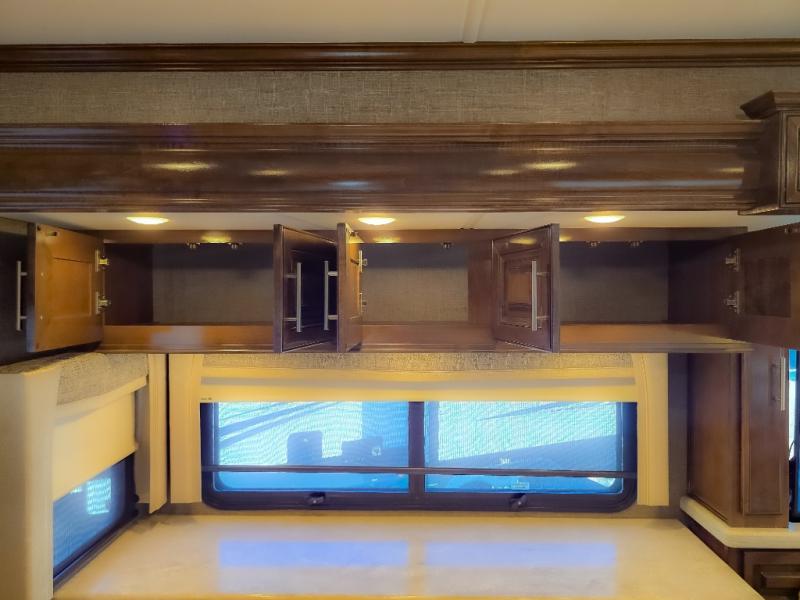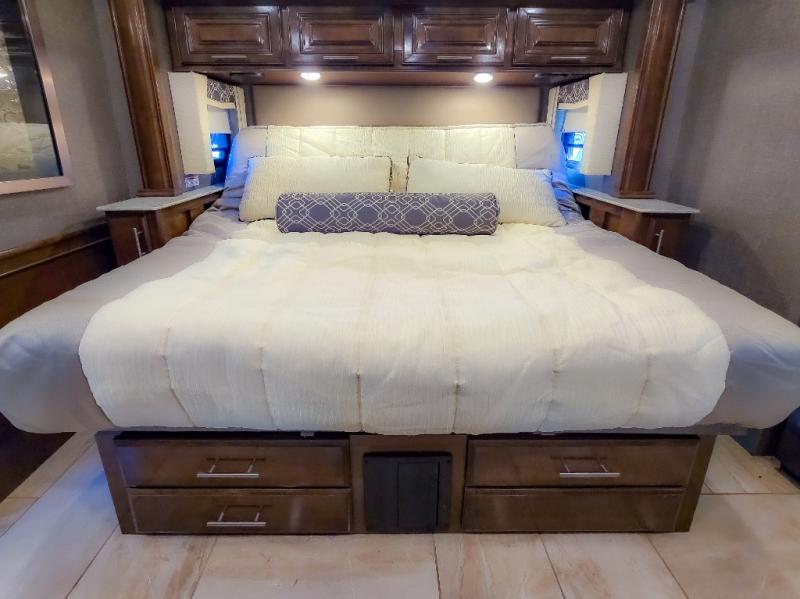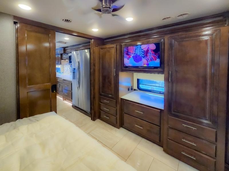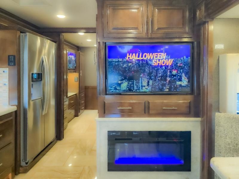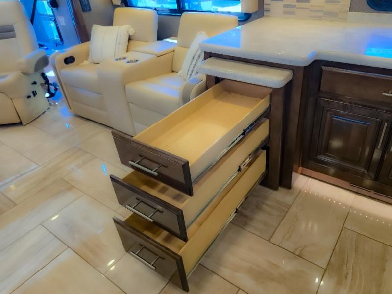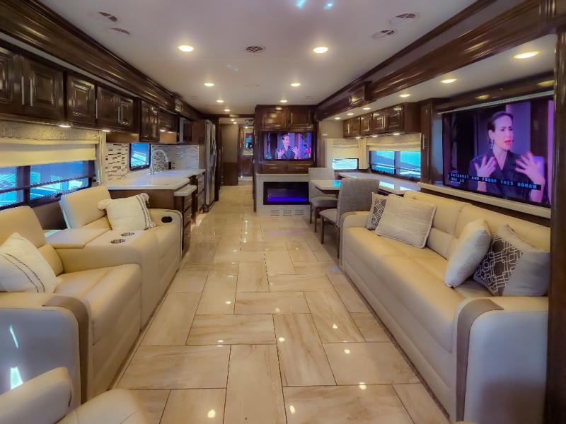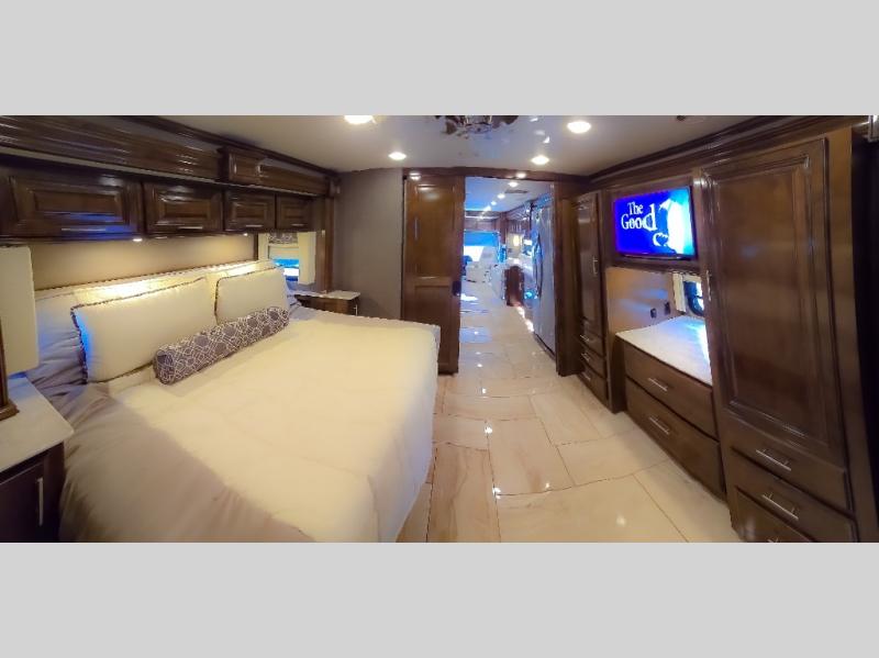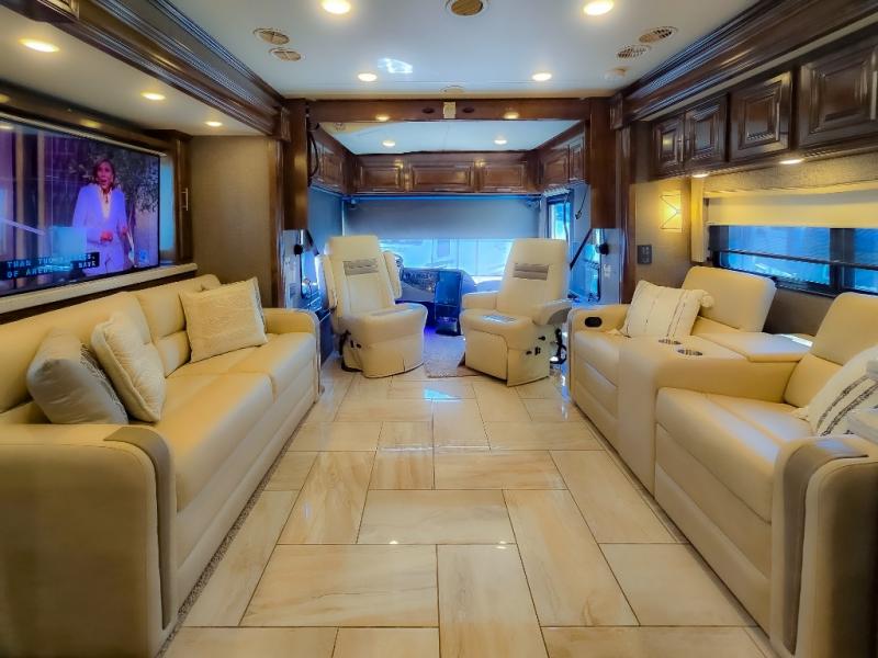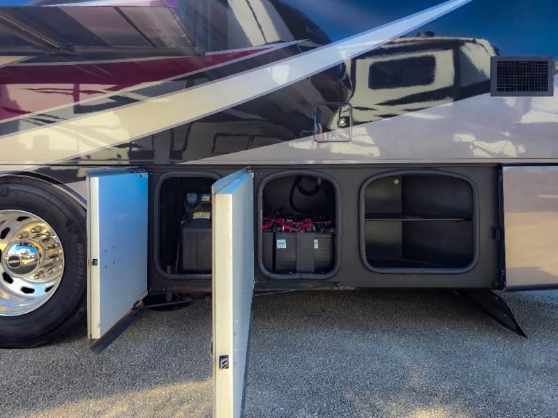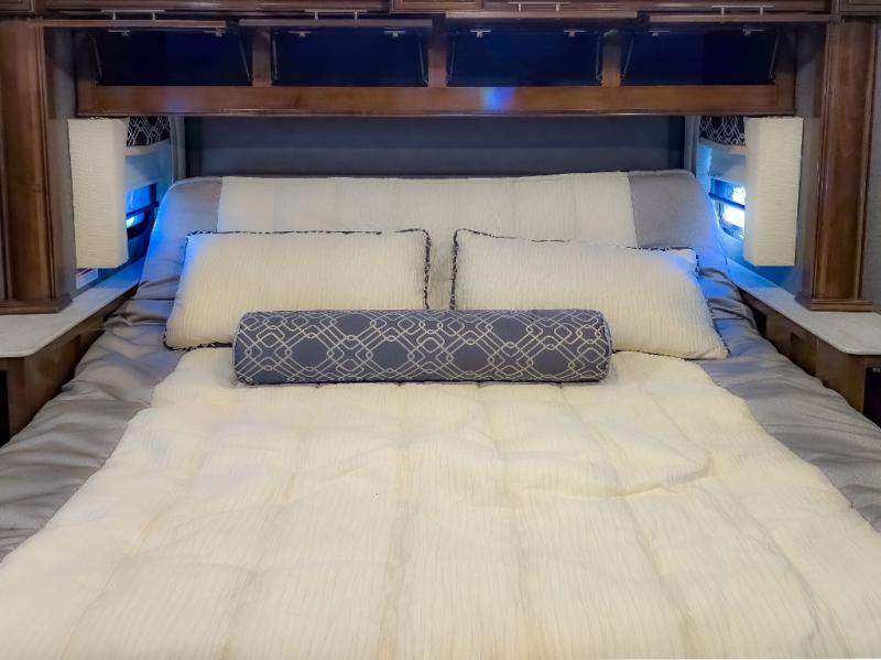 You can stop dreaming about all the places you would like to visit and begin enjoying the journey with this Venetian Class A diesel motorhome. From stepping foot into this coach and riding on comfortable furniture that include the captain's chairs, you will feel like you haven't been traveling for hours. Once you decide to set up at the RV park, you can take a shower in the rear full bathroom, start a load of laundry in the stackable washer and dryer, and take a nap on the king Tilt-A-View bed which will allow you to sit up while you read a book or surf the web. Your spouse might like to watch the big game on the exterior 39" TV or one of the interior TVs, like the retractable 55" Smart HDTV in the living area. If you enjoy cooking, the kitchen offers stainless steel appliances, even a convection microwave. You also have options to customize the furniture so that it's just the way you like it.