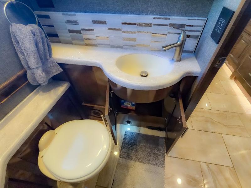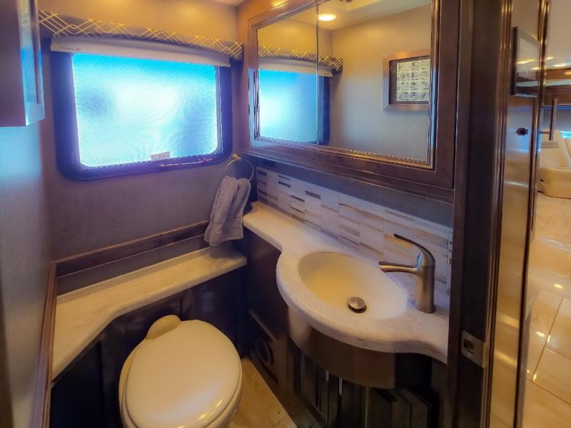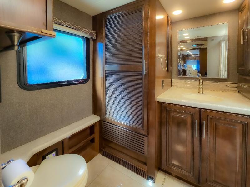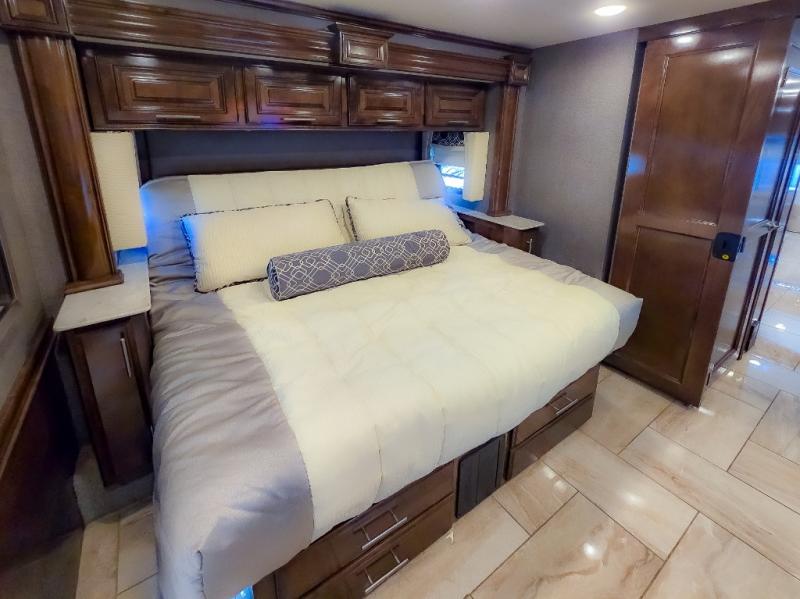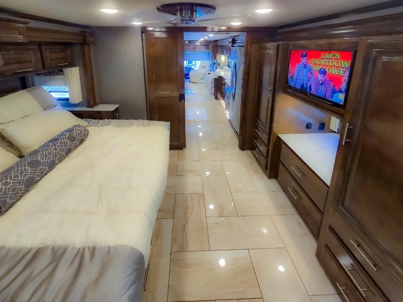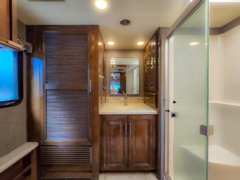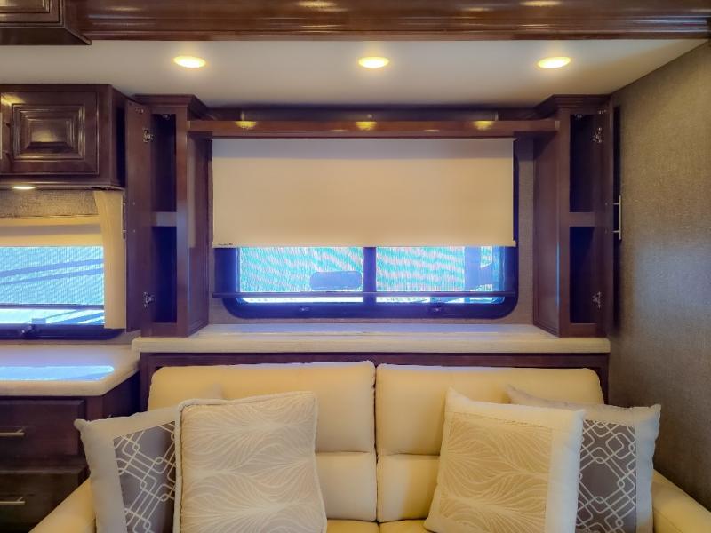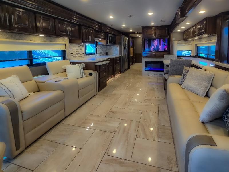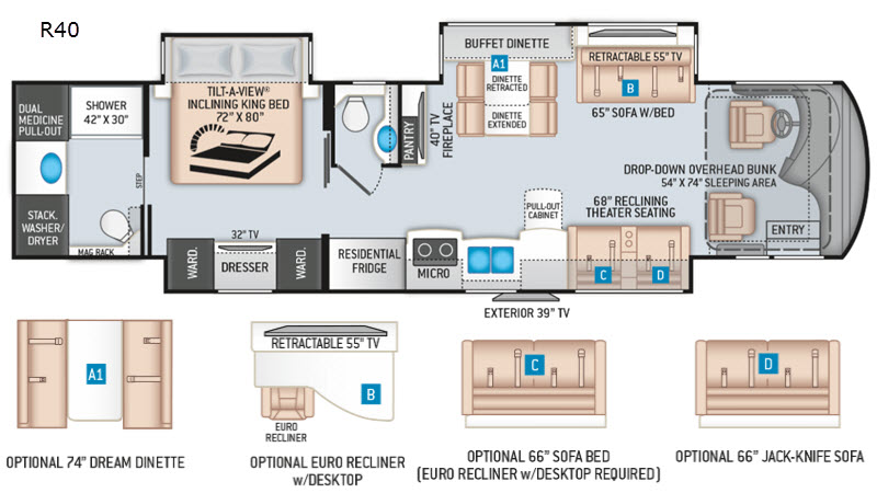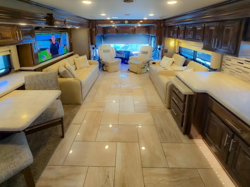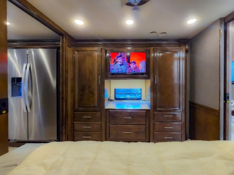 You can stop dreaming about all the places you would like to visit and begin enjoying the journey with this Venetian Class A diesel motorhome. From stepping foot into this coach and riding on comfortable furniture that include the captain's chairs, you will feel like you haven't been traveling for hours. Once you decide to set up at the RV park, you can take a shower in the rear full bathroom, start a load of laundry in the stackable washer and dryer, and take a nap on the king Tilt-A-View bed which will allow you to sit up while you read a book or surf the web. Your spouse might like to watch the big game on the exterior 39" TV or one of the interior TVs, like the retractable 55" Smart HDTV in the living area. If you enjoy cooking, the kitchen offers stainless steel appliances, even a convection microwave. You also have options to customize the furniture so that it's just the way you like it.