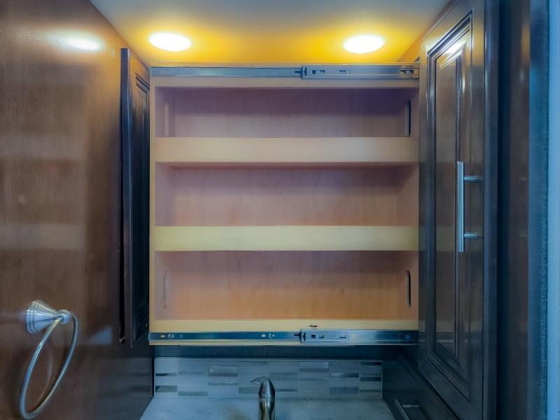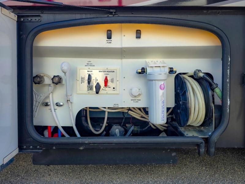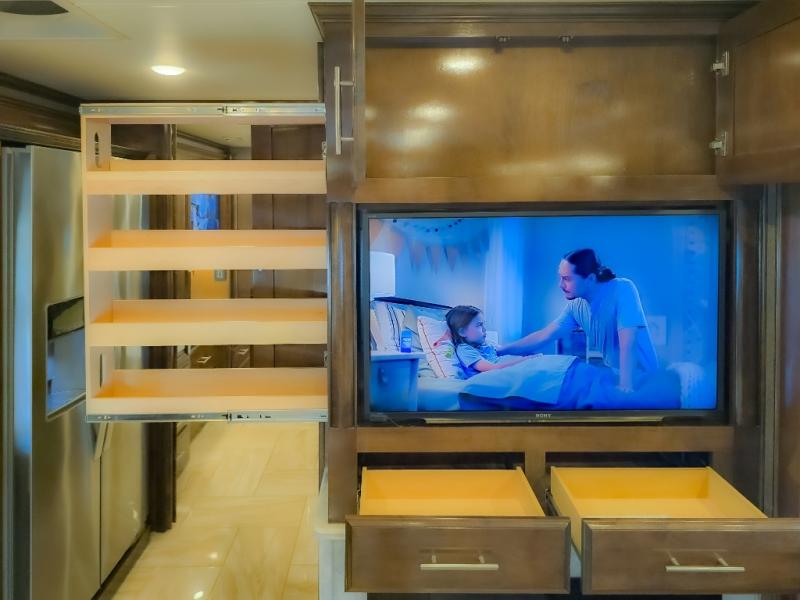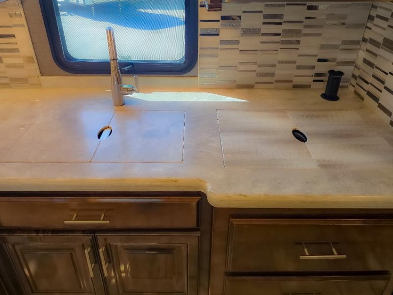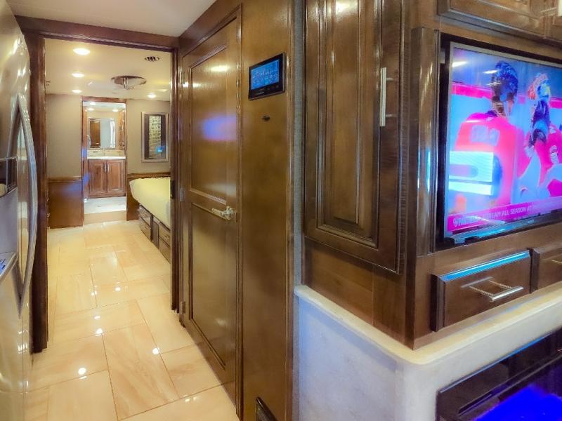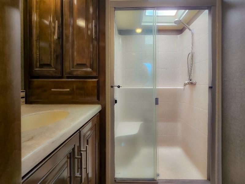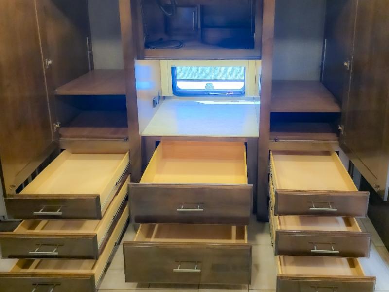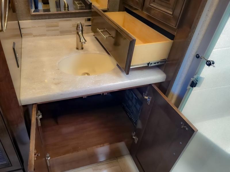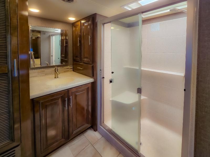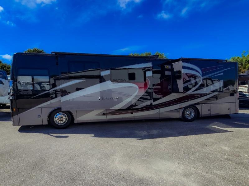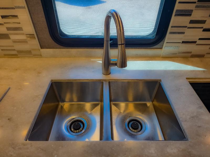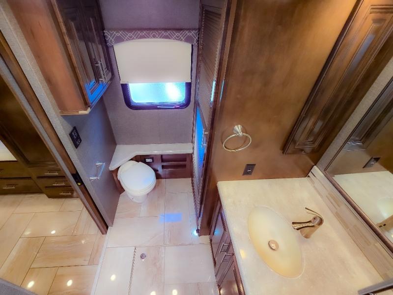 You can stop dreaming about all the places you would like to visit and begin enjoying the journey with this Venetian Class A diesel motorhome. From stepping foot into this coach and riding on comfortable furniture that include the captain's chairs, you will feel like you haven't been traveling for hours. Once you decide to set up at the RV park, you can take a shower in the rear full bathroom, start a load of laundry in the stackable washer and dryer, and take a nap on the king Tilt-A-View bed which will allow you to sit up while you read a book or surf the web. Your spouse might like to watch the big game on the exterior 39" TV or one of the interior TVs, like the retractable 55" Smart HDTV in the living area. If you enjoy cooking, the kitchen offers stainless steel appliances, even a convection microwave. You also have options to customize the furniture so that it's just the way you like it.