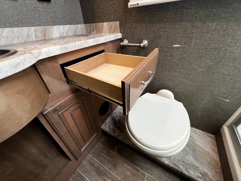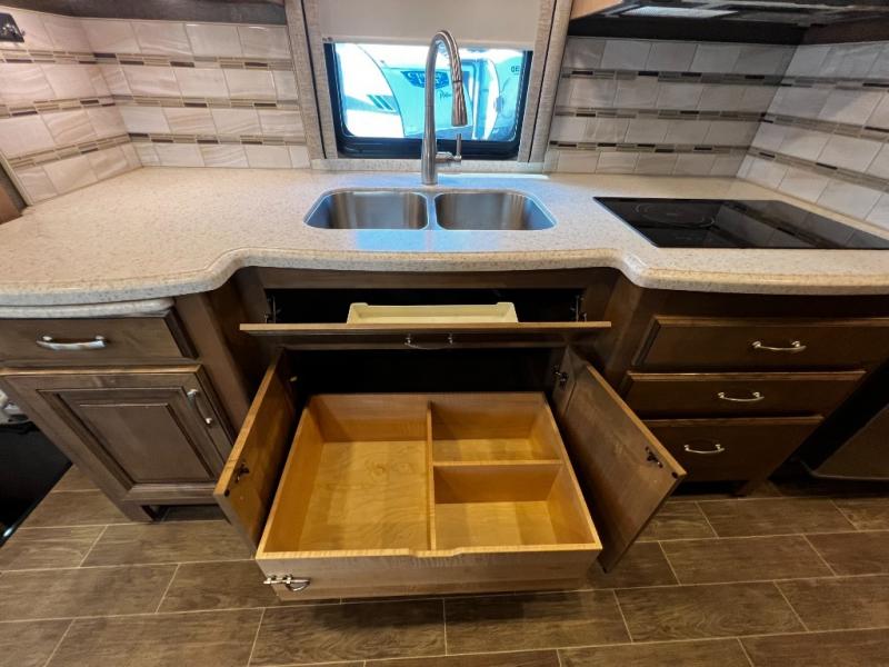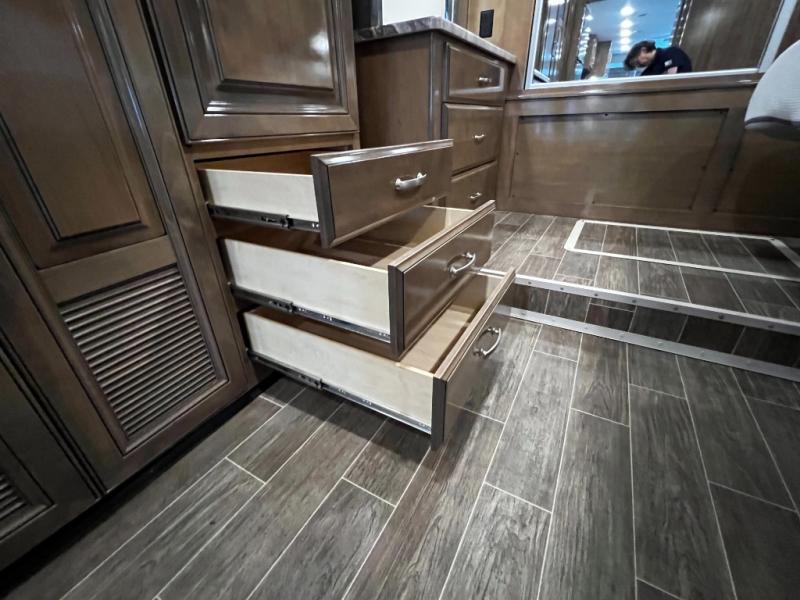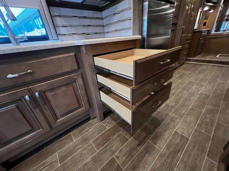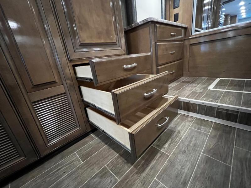 - High-end finishes including Ultraleather seating, solid wood cabinetry, and residential-style flooring add a touch of elegance throughout.