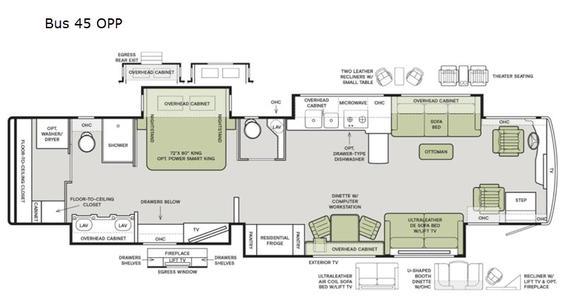 Tiffin Motorhomes Allegro Bus Class A diesel motorhome 45 OPP highlights: