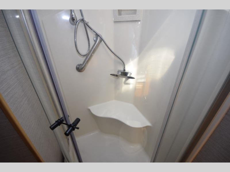 Refresh and recharge with a spacious shower — no campground bathrooms needed! -