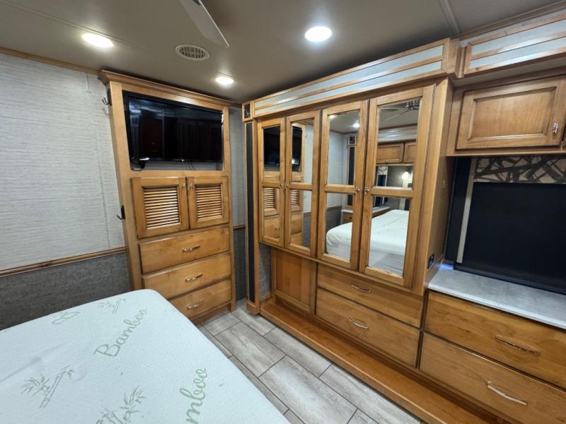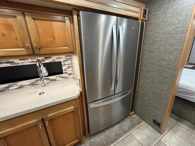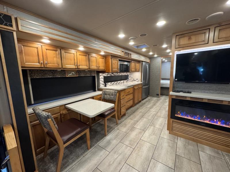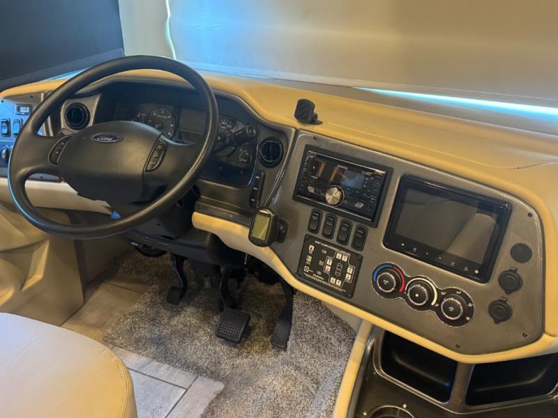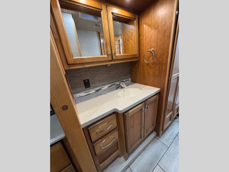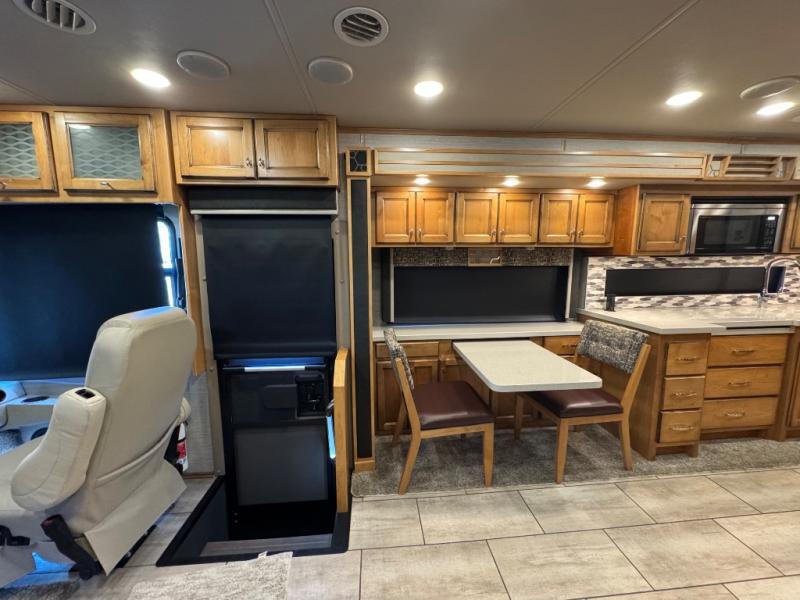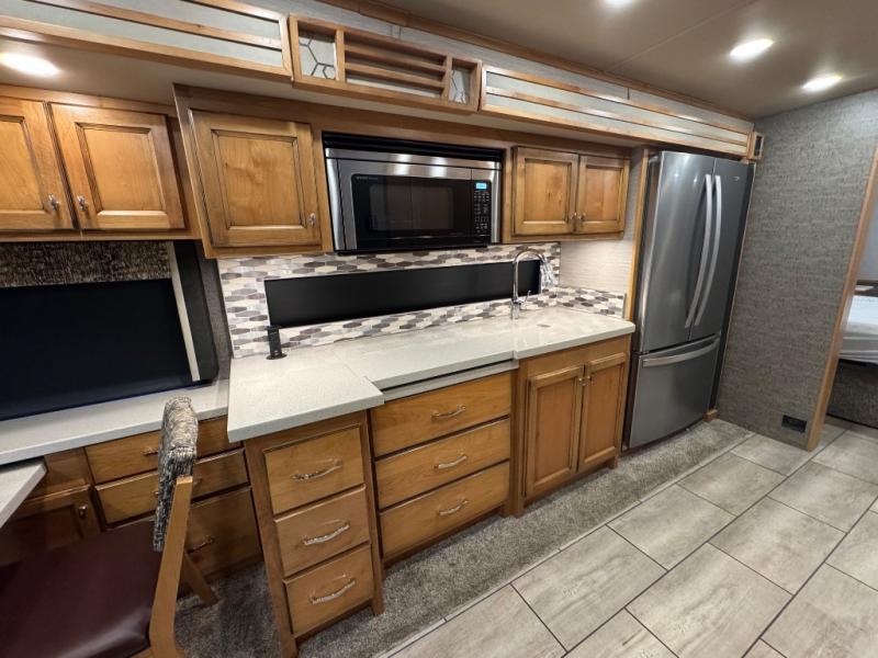 There are plenty of standard features and options to make this motorhome exactly what you want! From the optional drop down bunk over the front Ultraleather power driver and passenger seats and the optional dinette with a computer workstation that can be replaced for the booth dinette to the optional washer and dryer area inside the bathroom. You can even choose to add the optional fireplace below the flat panel TV for even more comfort as you relax on the sofa bed slide out. The rear private bedroom comes standard with a 60" x 80" queen-size memory foam mattress but if you want something bigger then you can switch it out for the optional king-size mattress instead. Yet you might decide the RV is perfect just as it comes!