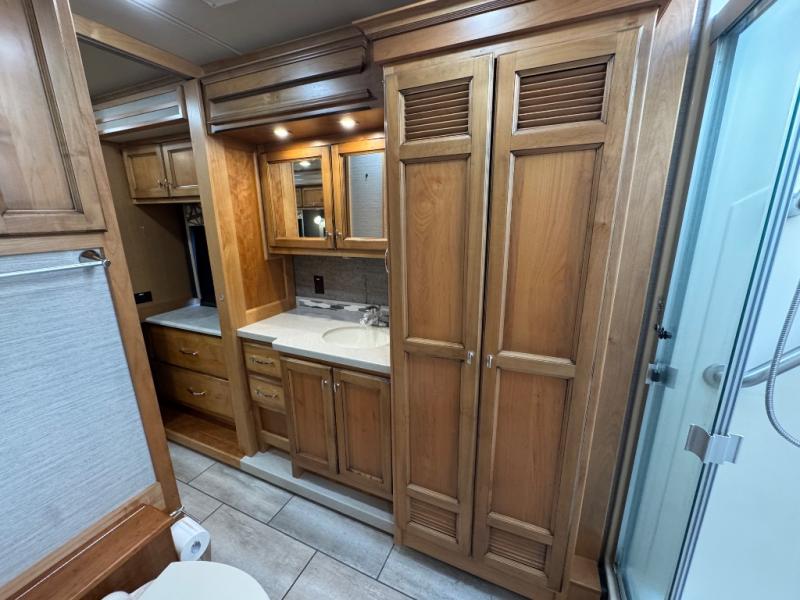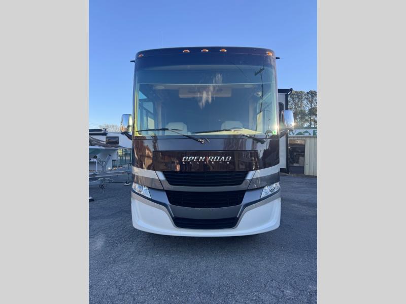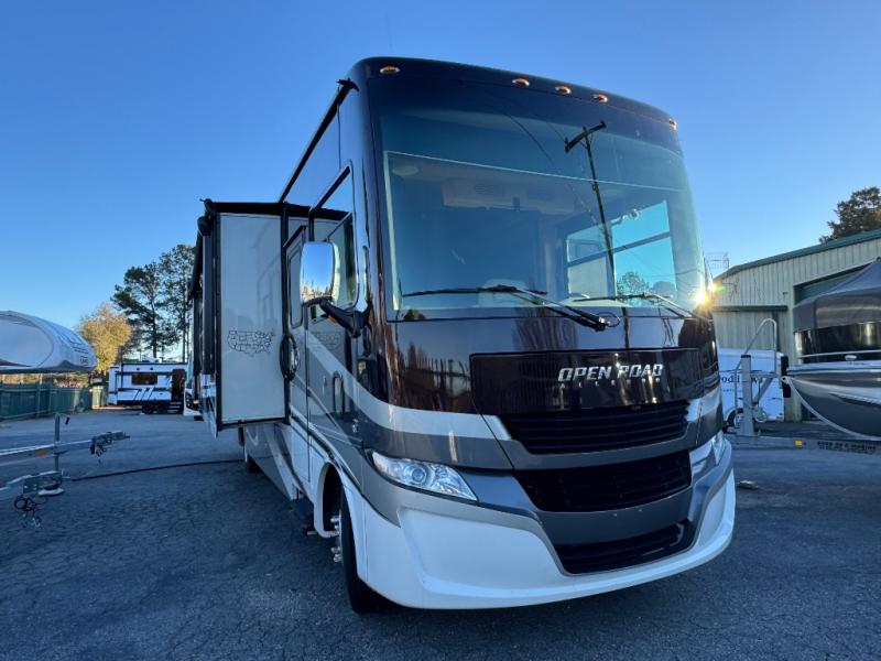 Each Open Road Allegro Class A gas coach by Tiffin Motorhomes offers a one-piece moisture resistant molded fiberglass roof cap providing insulation and strength, a durable and lightweight tubular aluminum wall skeleton, and fiberglass front and rear caps allowing you to enjoy your motorhome for many years to come. The multiplex Spyder Controls system allows you to monitor various tank levels and adjust electrical components of the coach from the comfort of one screen, and the hydraulic automatic leveling jacks make set up a breeze. The kitchen panoramic vista window offers you beautiful scenery, and the high gloss flat panel hardwood cabinet doors, solid wood cabinet fascias, and Ultraleather furniture gives you comfort and style, plus the home theater surround sound system with DVD player is another luxury feature you will enjoy. Start making a lifetime of memories with your own Tiffin Motorhomes Open Road Allegro Class A gas motorhome!