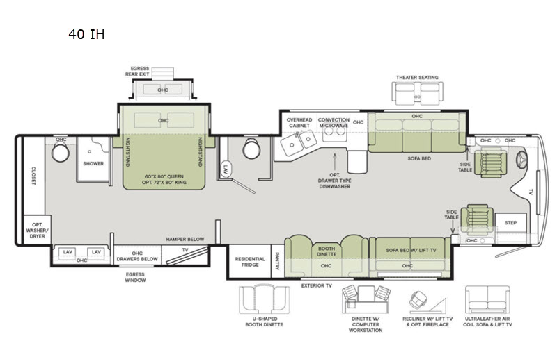 Tiffin Motorhomes Phaeton Class A diesel motorhome 40 IH highlights: