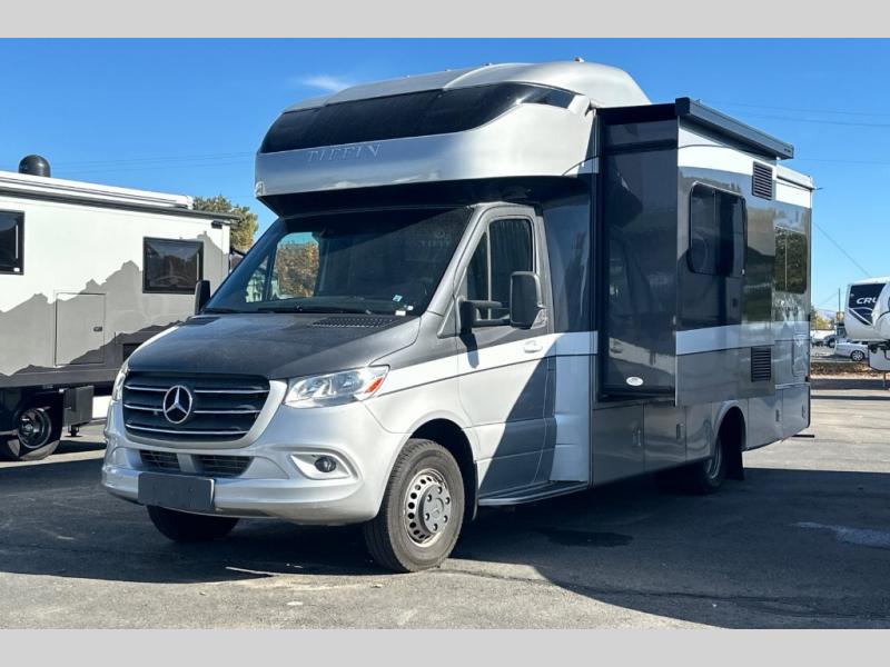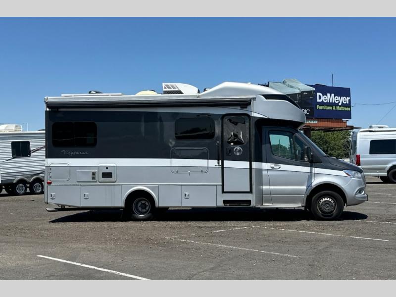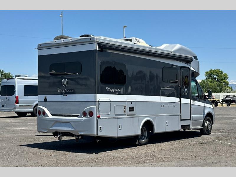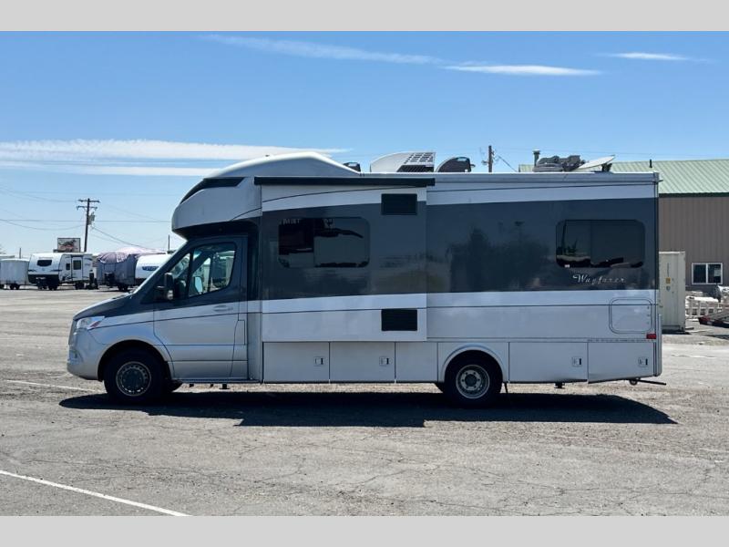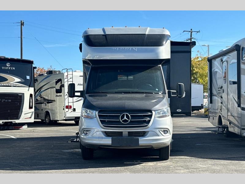 The Wayfarer Class C diesel motorhome from Tiffin Motorhomes offers you more of everything you need along with the luxurious styling and amenities you want! Spacious interiors, industry-standard safety features, and high-performance upgrades embody the heart and soul of every Wayfarer. Starting with a Mercedes Sprinter chassis, a 7G-Tronic automatic transmission, plus a 5,000 lb. hitch capacity, you can plan your trip across the states. The 10.25" MBUX infotainment system with in-dash navigation will make your journey that much easier and you're sure to stay comfortable in the black leather seats. Each model features a soft vinyl ceiling, a designer faucet in the kitchen, LED reading lights and nightstands in the bedroom, plus a porcelain vessel sink with a chrome faucet in the bath that will add luxury to your morning routine. Outside, the 16' Girard power awning with speakers will provide an outdoor living space, the hydraulic leveling system will make setting up a snap, and the eight-step full-body paint system is sure to turn heads wherever you choose to travel!