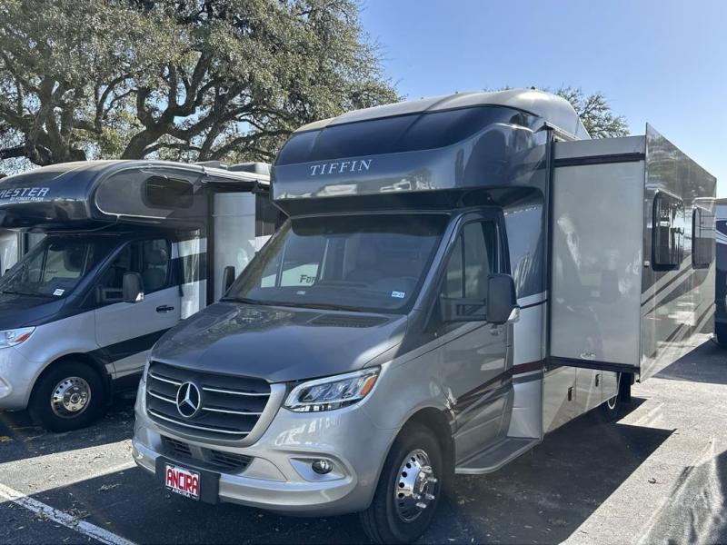 The Wayfarer Class C diesel motorhome from Tiffin Motorhomes offers you more of everything you need along with the luxurious styling and amenities you want! Spacious interiors, industry-standard safety features, and high-performance upgrades embody the heart and soul of every Wayfarer. Starting with a Mercedes Sprinter chassis, a 7G-Tronic automatic transmission, plus a 5,000 lb. hitch capacity, you can plan your trip across the states. The 10.25" MBUX infotainment system with in-dash navigation will make your journey that much easier and you're sure to stay comfortable in the black leather seats. Each model features a soft vinyl ceiling, a designer faucet in the kitchen, LED reading lights and nightstands in the bedroom, plus a porcelain vessel sink with a chrome faucet in the bath that will add luxury to your morning routine. Outside, the 16' Girard power awning with speakers will provide an outdoor living space, the hydraulic leveling system will make setting up a snap, and the eight-step full-body paint system is sure to turn heads wherever you choose to travel!