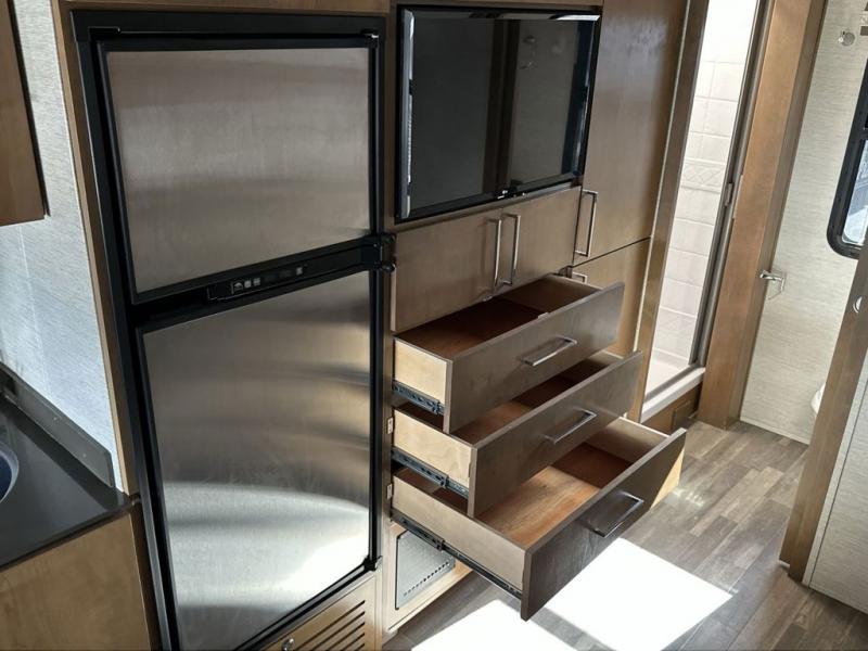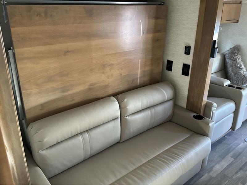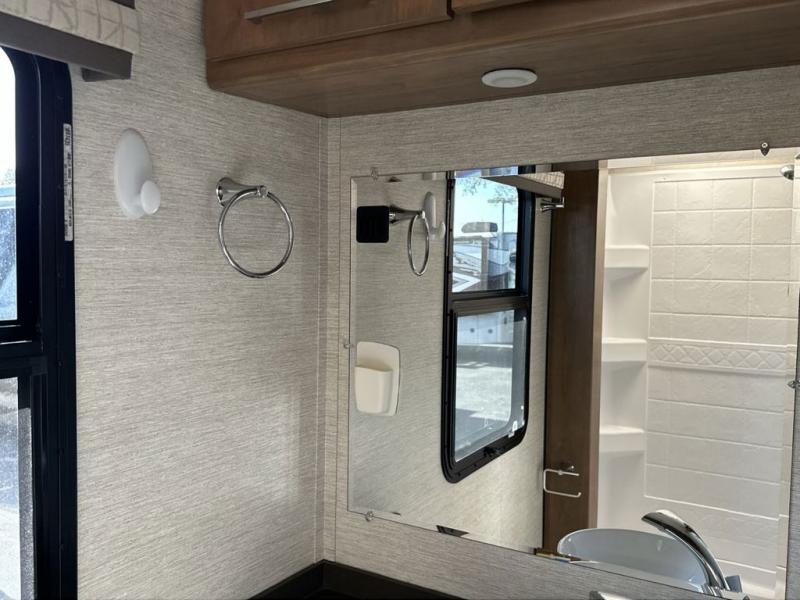 For all of your adventures, you will appreciate the convenient and functional amenities found in this Wayfarer Class C diesel motorhome! The 24" x 36" shower in the rear bathroom is a private location where you can get ready for the day, and the Murphy bed is such a great addition because it can be folded away to reveal more interior living space. You will find it easy to create those home-cooked meals that you love with the LP cooktop and convection microwave in the kitchen, and the over-the-counter lighting, as well as the under-the-counter lighting, will be both beneficial and stylish.