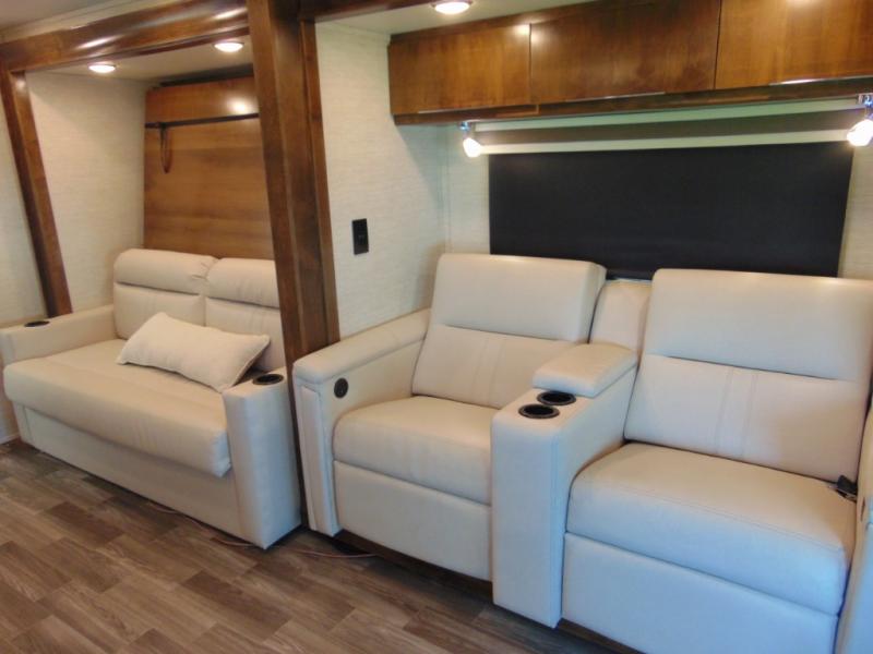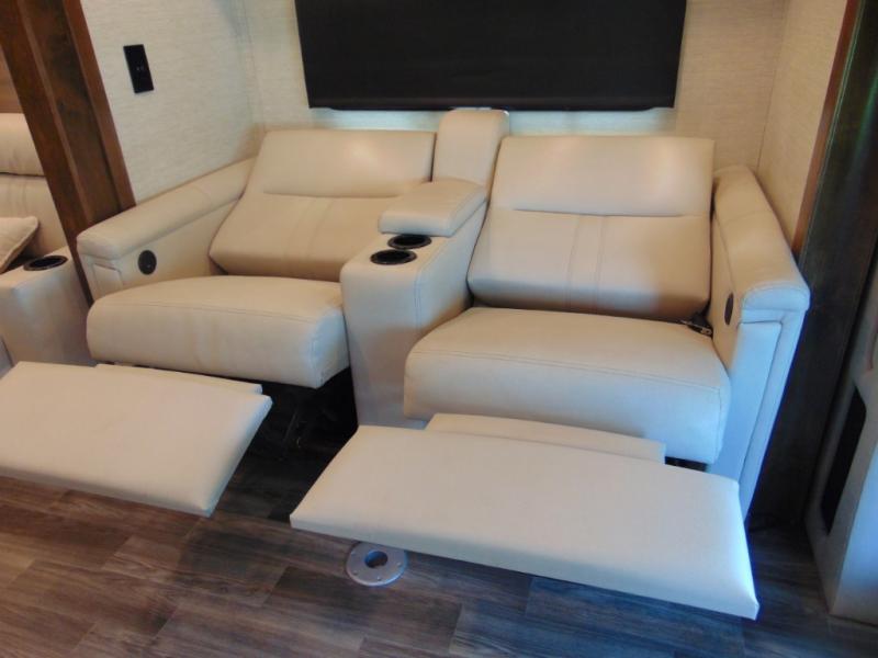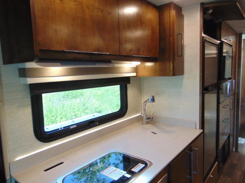 For all of your adventures, you will appreciate the convenient and functional amenities found in this Wayfarer Class C diesel motorhome! The 24" x 36" shower in the rear bathroom is a private location where you can get ready for the day, and the Murphy bed is such a great addition because it can be folded away to reveal more interior living space. You will find it easy to create those home-cooked meals that you love with the LP cooktop and convection microwave in the kitchen, and the over-the-counter lighting, as well as the under-the-counter lighting, will be both beneficial and stylish.