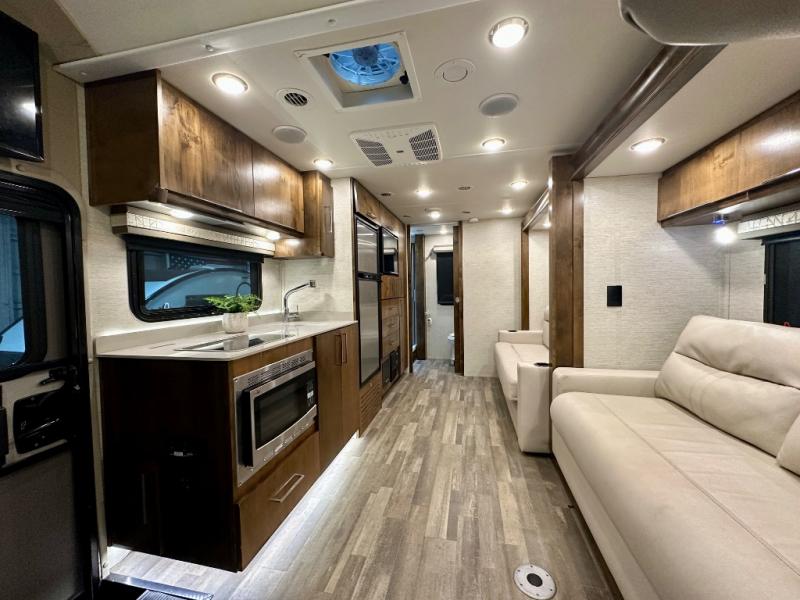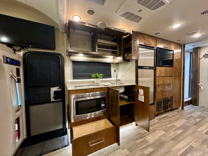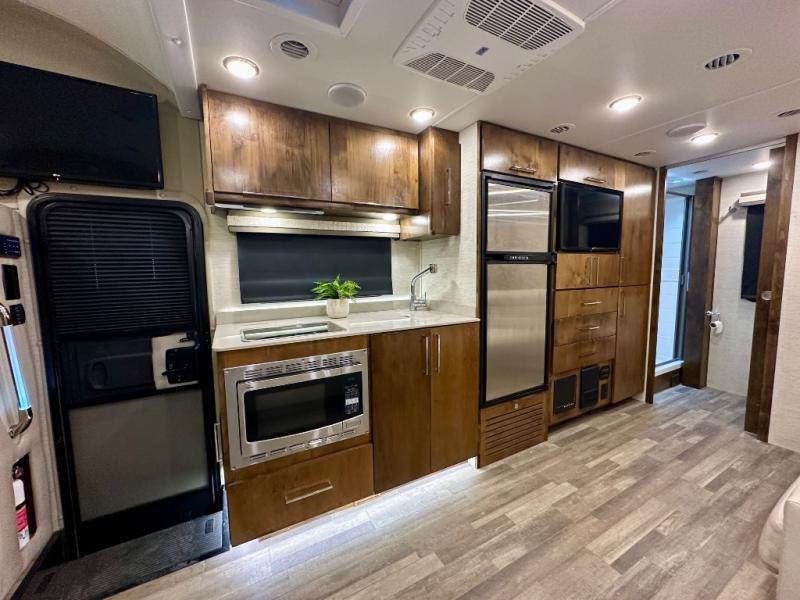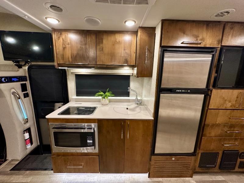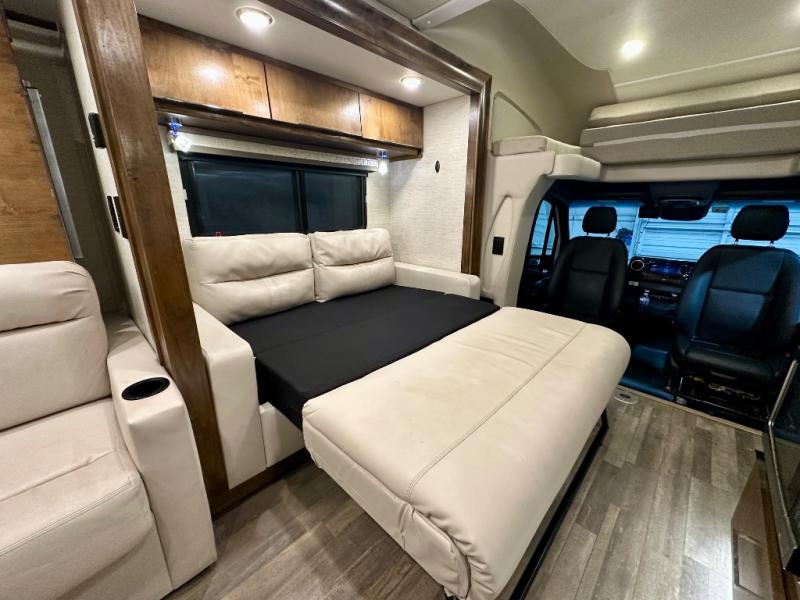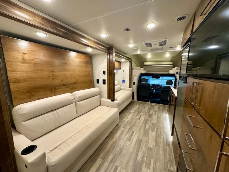 The Wayfarer Class C diesel motorhome from Tiffin Motorhomes offers you more of everything you need along with the luxurious styling and amenities you want! Spacious interiors, industry-standard safety features, and high-performance upgrades embody the heart and soul of every Wayfarer. Starting with a Mercedes Sprinter chassis, a 7G-Tronic automatic transmission, plus a 5,000 lb. hitch capacity, you can plan your trip across the states. The 10.25" MBUX infotainment system with in-dash navigation will make your journey that much easier and you're sure to stay comfortable in the black leather seats. Each model features a soft vinyl ceiling, a designer faucet in the kitchen, LED reading lights and nightstands in the bedroom, plus a porcelain vessel sink with a chrome faucet in the bath that will add luxury to your morning routine. Outside, the 16' Girard power awning with speakers will provide an outdoor living space, the hydraulic leveling system will make setting up a snap, and the eight-step full-body paint system is sure to turn heads wherever you choose to travel!