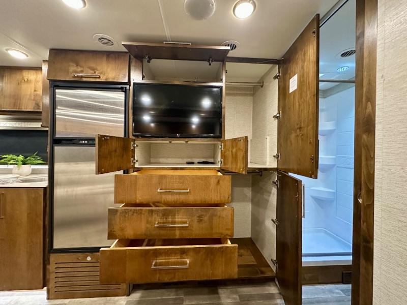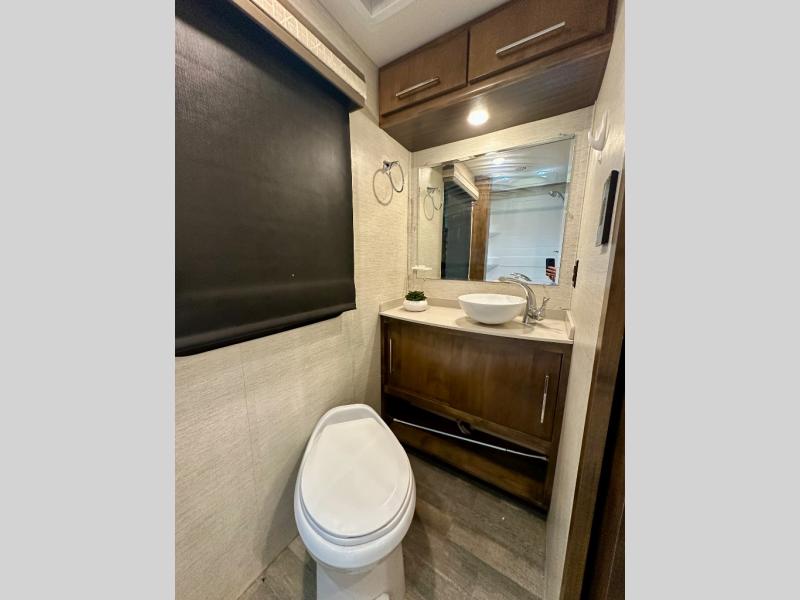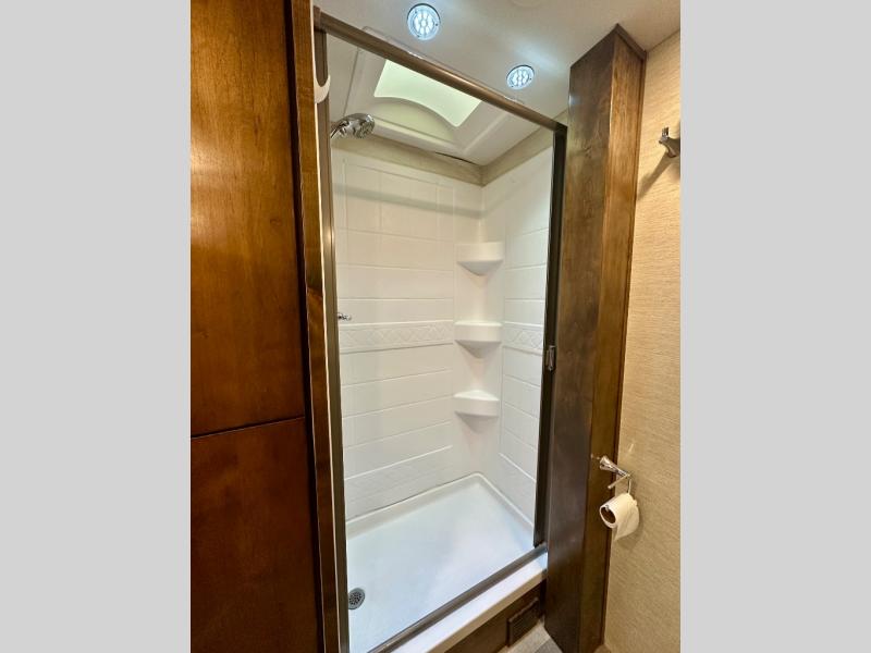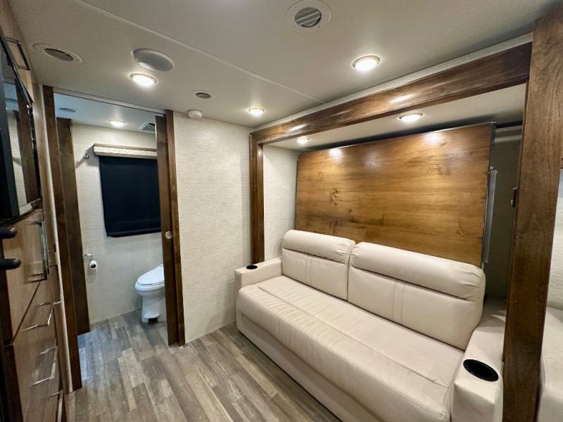 For all of your adventures, you will appreciate the convenient and functional amenities found in this Wayfarer Class C diesel motorhome! The 24" x 36" shower in the rear bathroom is a private location where you can get ready for the day, and the Murphy bed is such a great addition because it can be folded away to reveal more interior living space. You will find it easy to create those home-cooked meals that you love with the LP cooktop and convection microwave in the kitchen, and the over-the-counter lighting, as well as the under-the-counter lighting, will be both beneficial and stylish.
