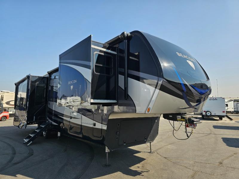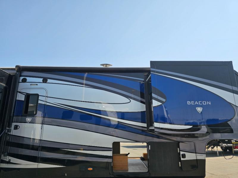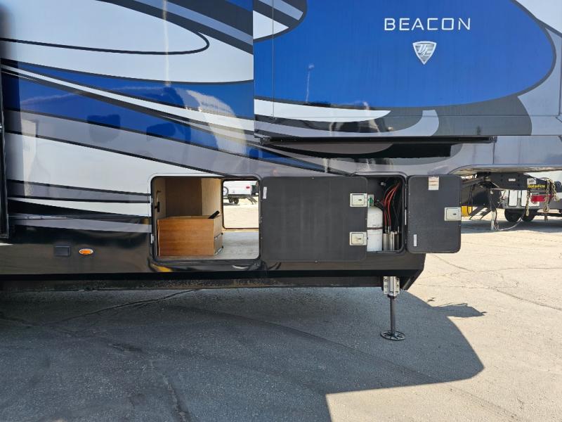 Whether you are simply heading out for the weekend or you call the road your home, the Beacon fifth wheel from VanLeigh RV has everything you could possibly want or need! You may find yourself staying inside all weekend long because of the fabulous interior amenities, like a theater sofa and master bedroom. A Spyder Controls multiplex system with a 7" color touchscreen allows you to take charge of various functioning equipment like tank levels, temperatures, and lighting. You will also find that the 40" fireplace delivers a home-like feel to the living area, and the king cool-gel memory-foam mattress is so relaxing and rejuvenating after a long day of excursions and expeditions.