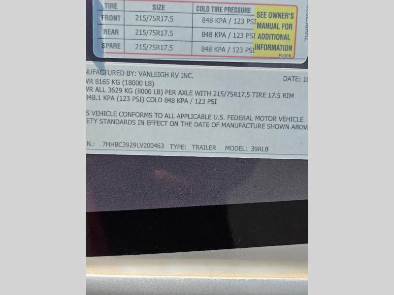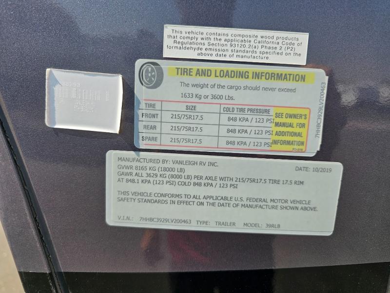 Used 2020 VanLeigh RV Beacon 39RLB Fifth Wheel